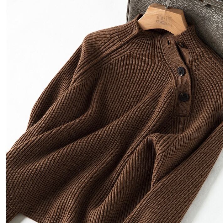 程よくフィットする細身のラインが女性らしい着こなしを演出するリブニット。