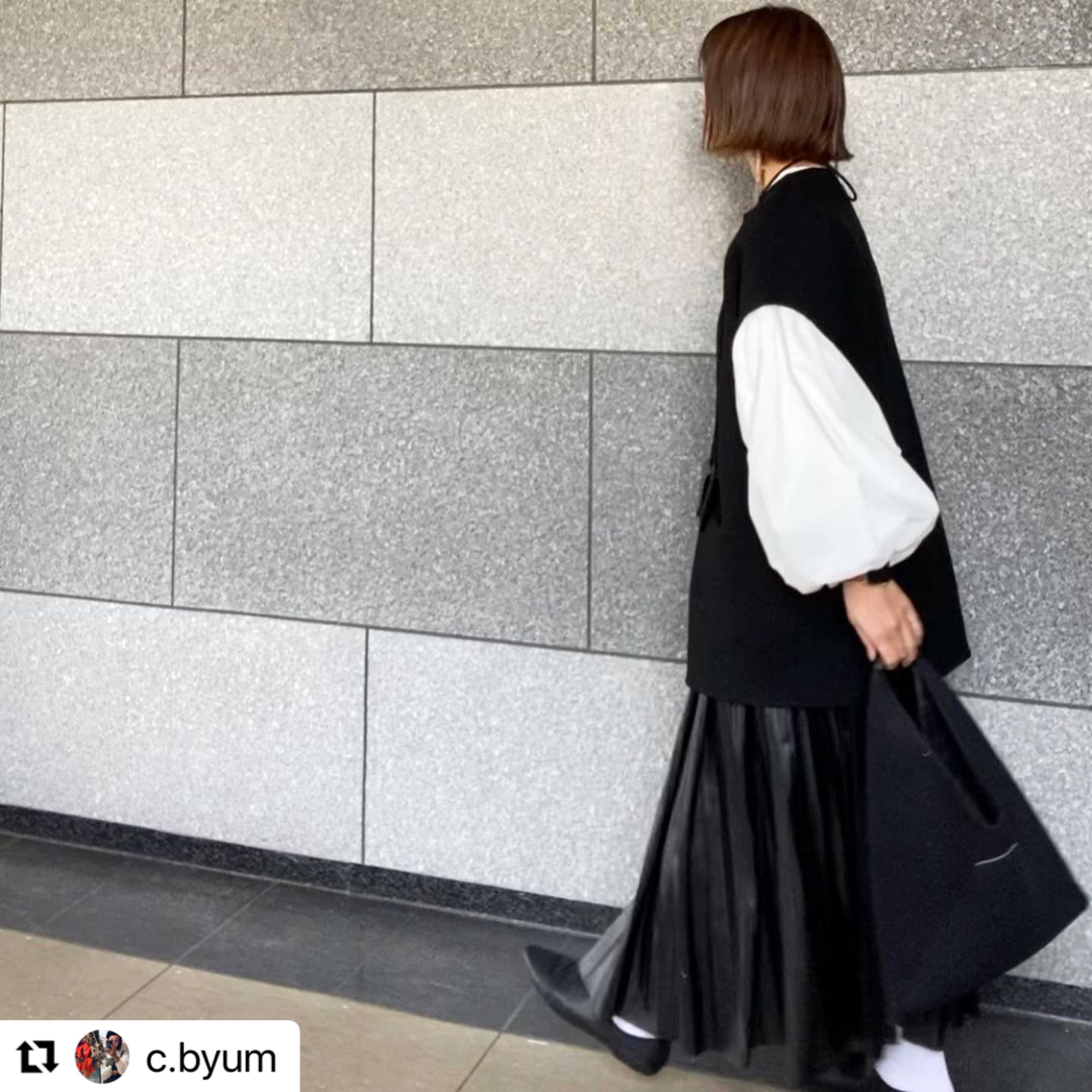 定番アイテムですが光沢のある素材でニットやコートとの相性抜群。もちろん、カジュアルな着こなしにも◎