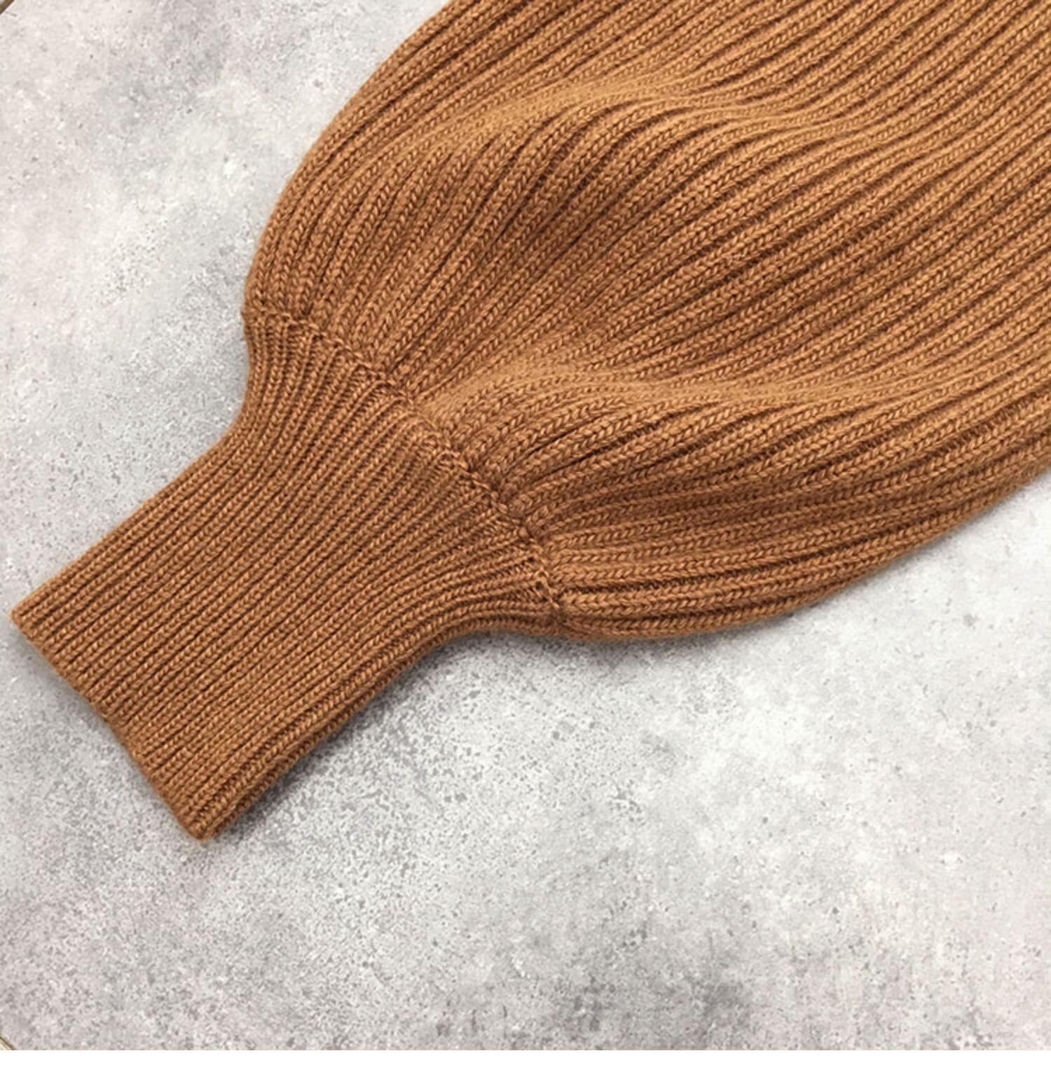 ハイネックデザインでフロントがクロスしてる特徴的なデザイン。程よい丈感なのでレイヤードスタイルにピッタリ。