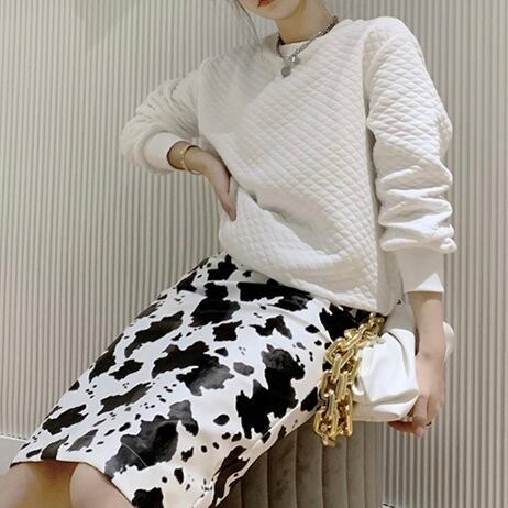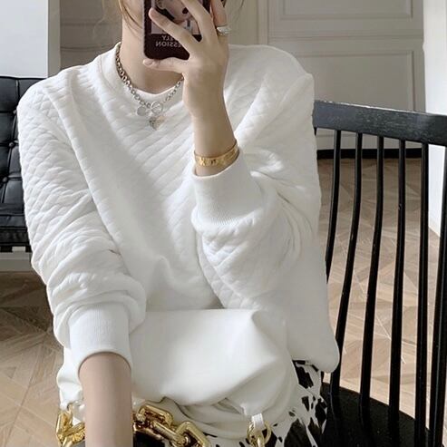 キルティング模様が秋冬らしい温かみのあるカットソー。クリーンなホワイトに施されたキルティング模様は他の人との差をつけます◎