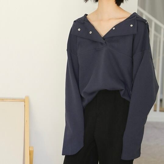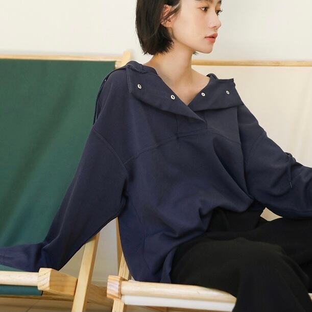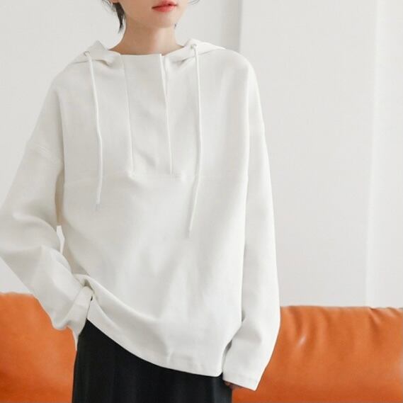 ゆるやかなサイズ感で重ね着しやすく、大きめのフードがリラックス感を演出してくれます。ボタンを開けると女性らしいデザインと、閉めるとカジュアルなデザインになります。