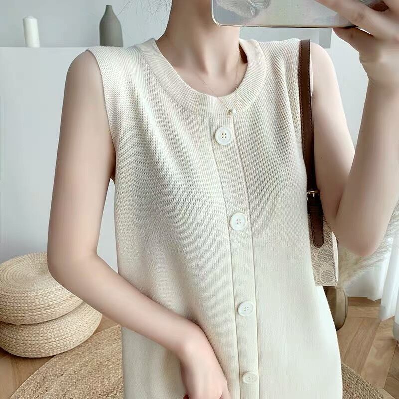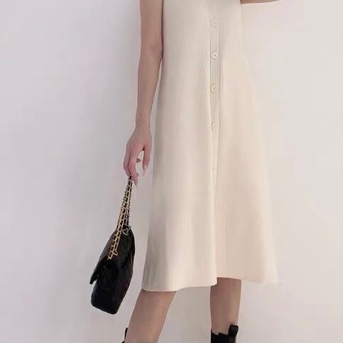 レイヤード次第で様々な表情を見せてくれそうなノースリーブニットワンピース。