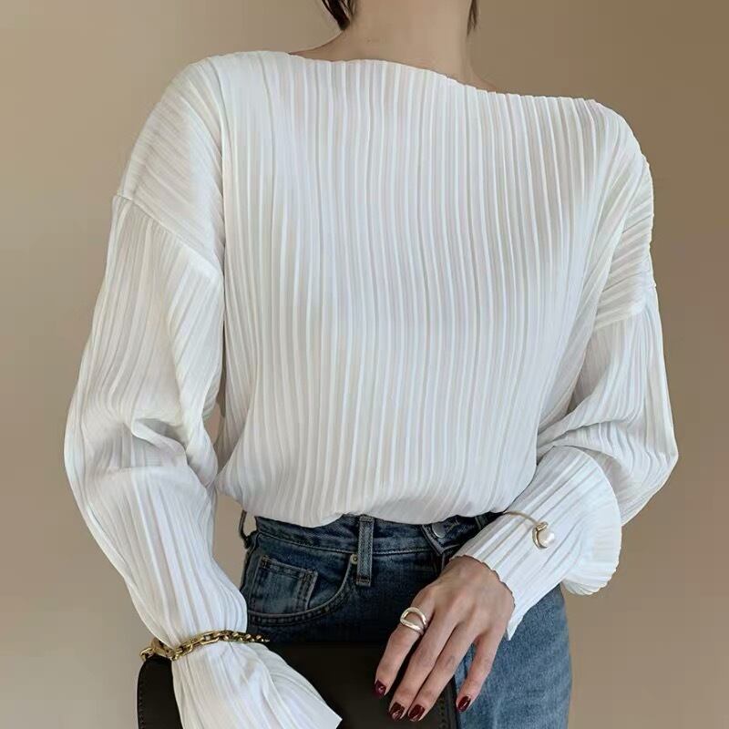 全体的にプリーツが入った伸縮性のあるトップスです。