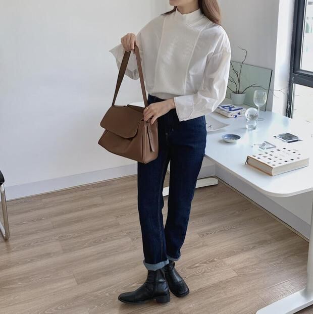 スタンドネックでブラウス同様きちんと感も出しつつ、どこか抜け感のあるトップスです。