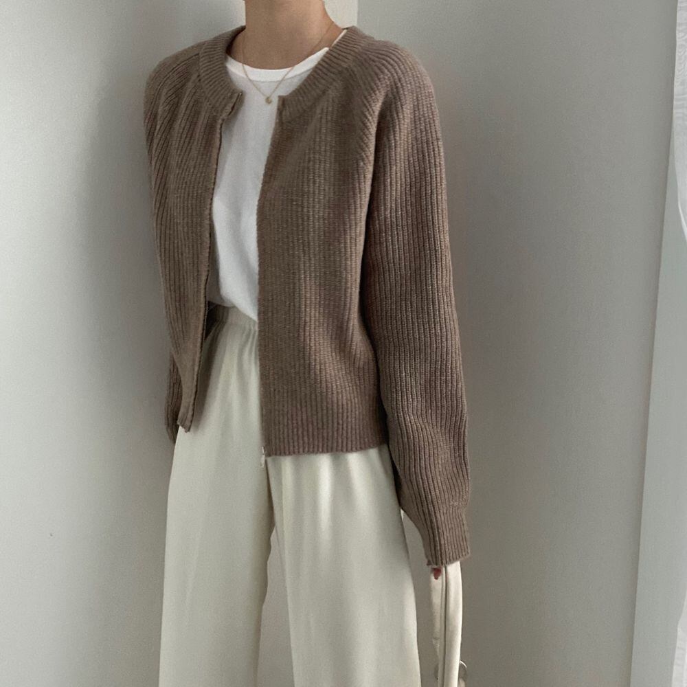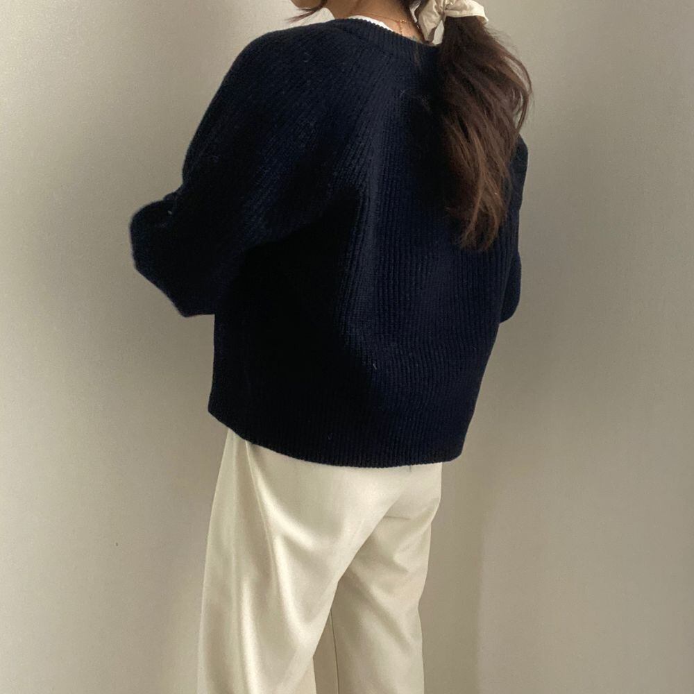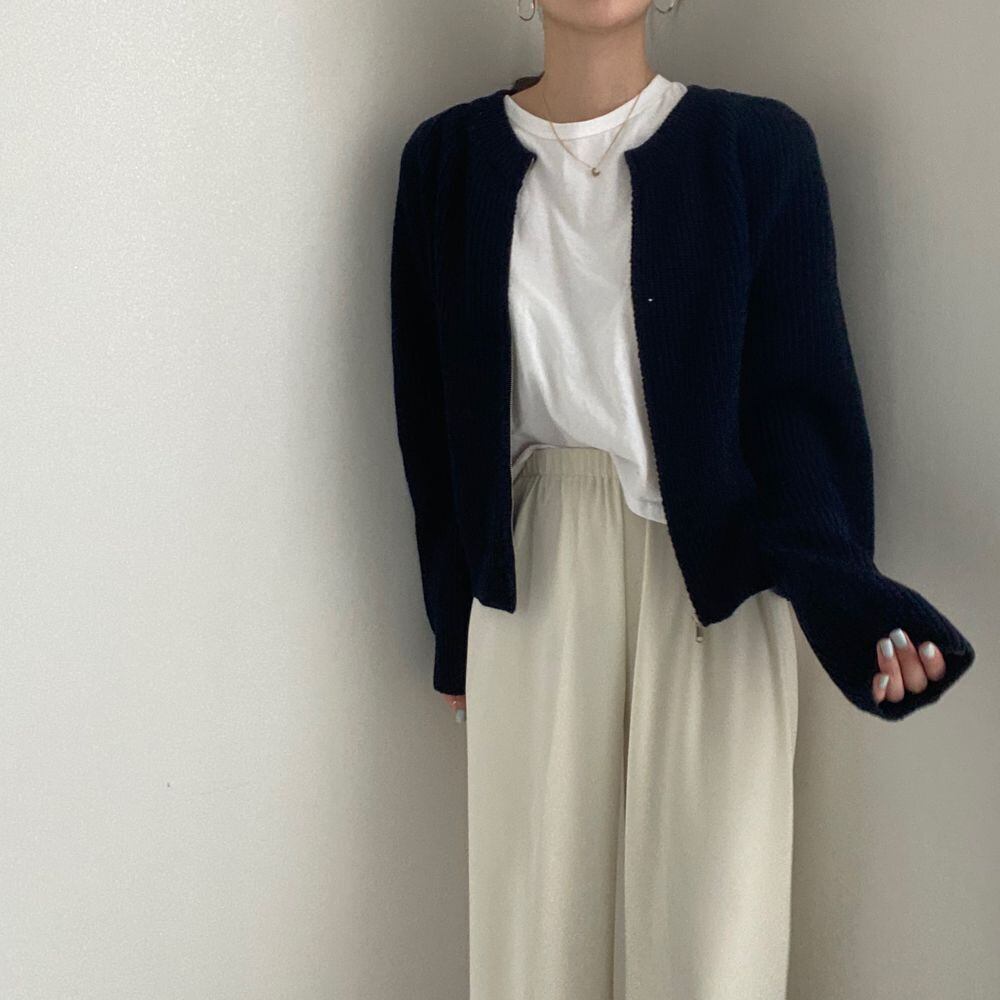 シンプルなシルエットの中にリブがアクセントになり、こなれ感を演出します。