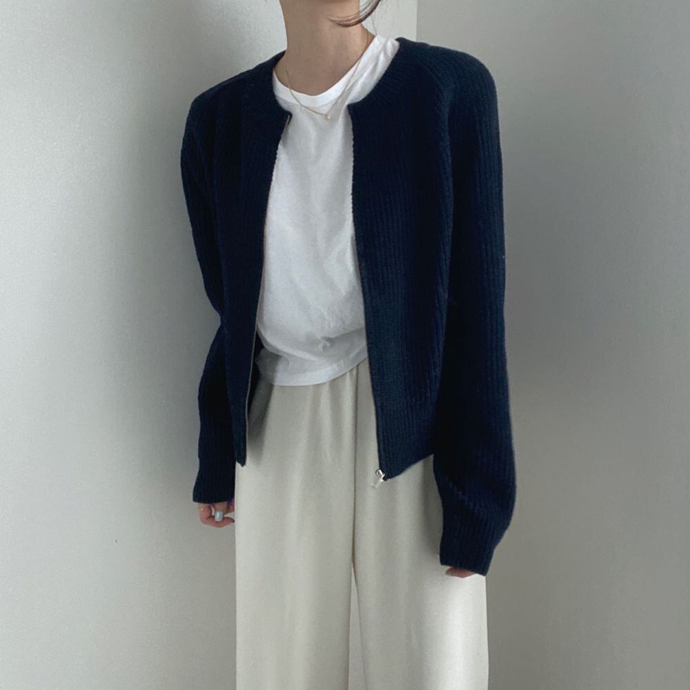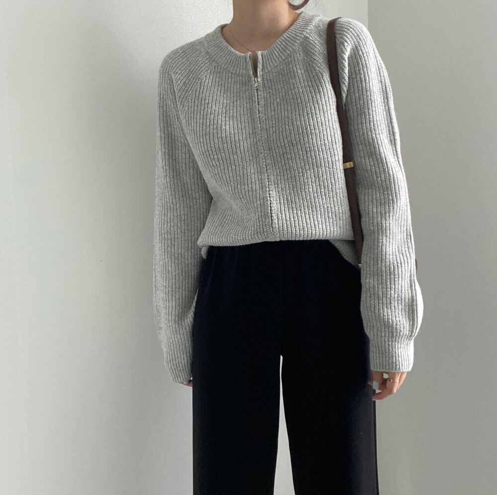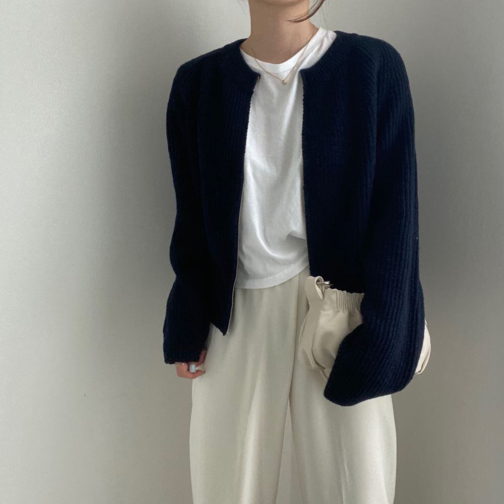 ラウンドネックのジップタイプでカジュアル過ぎず、キレイ目にも合わせやすいアイテムです。