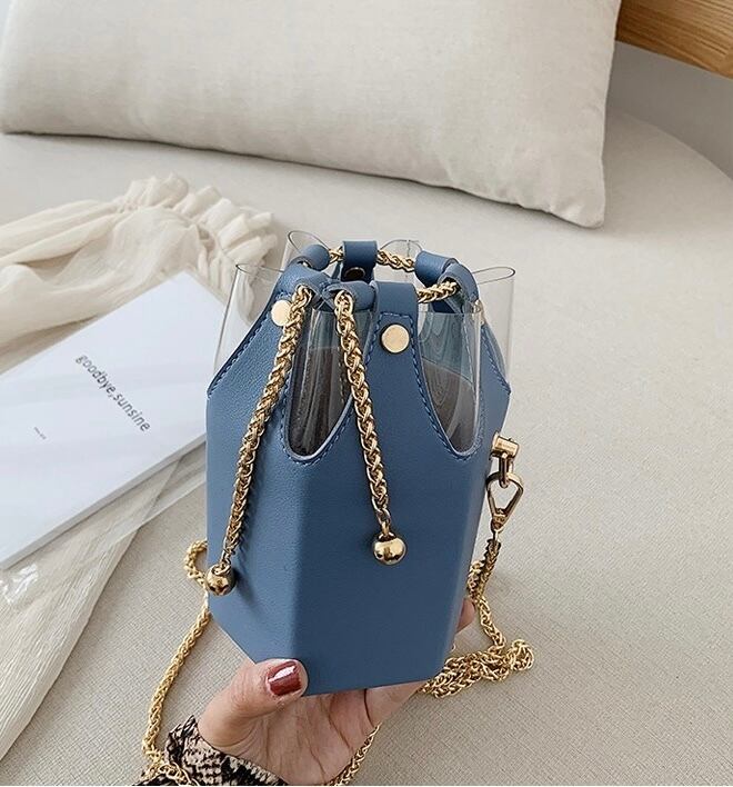 ヘキサゴンフォルムが印象的なミニバッグ。