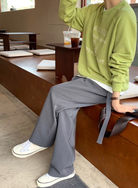 ワイドシルエットですが、リボンベルトが付属されており、さらにウエスト前部分にタックが入っているため、きれいなラインを造ってくれます。