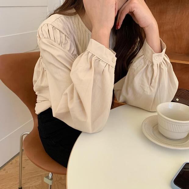 シンプルで着回しのきく万能シャツです。1枚着としても活躍できるように、後ろまでデザインをきかせた1枚になっています。裾に向かってフレアに広がるシルエットでタイトなボトムスと好相性です。