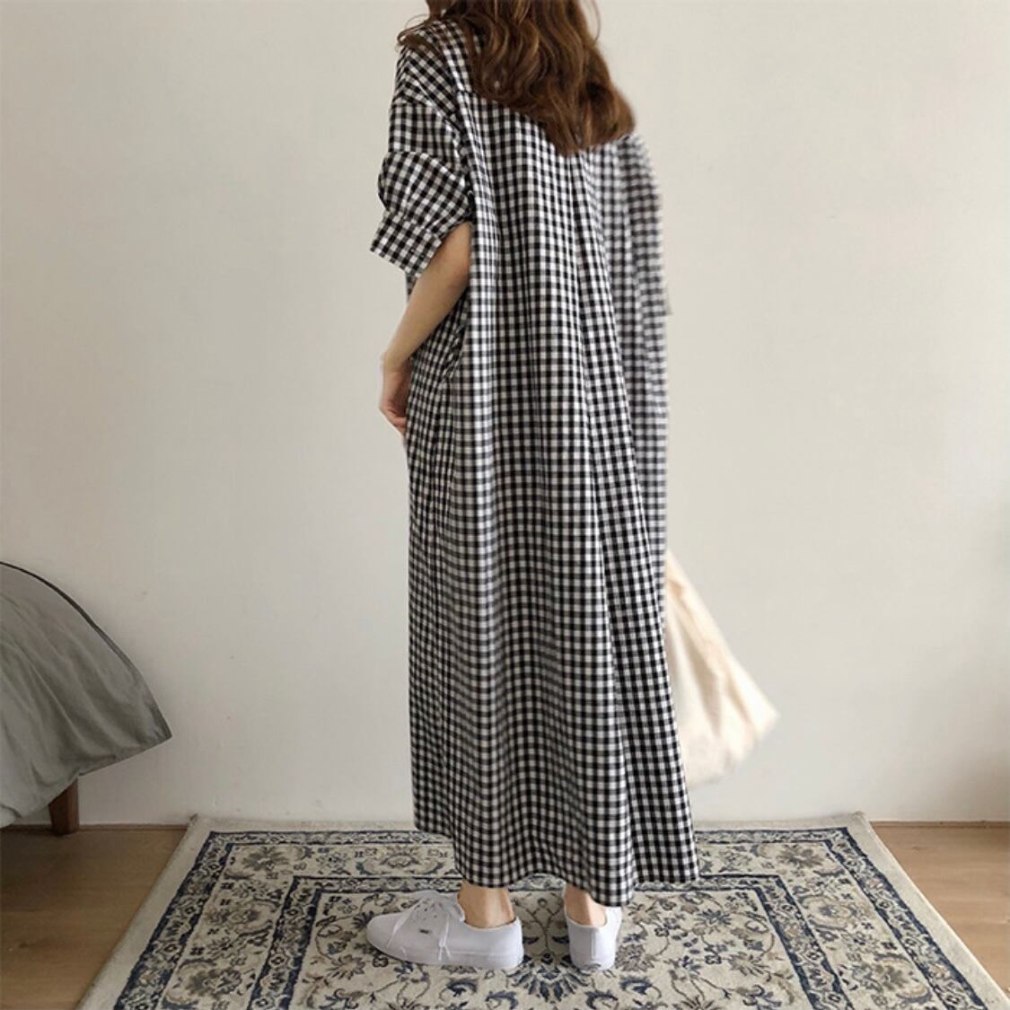 ゆったりとしたシルエットで1枚でサマになるワンピースです。ふわっとしたAラインが目を引きます。