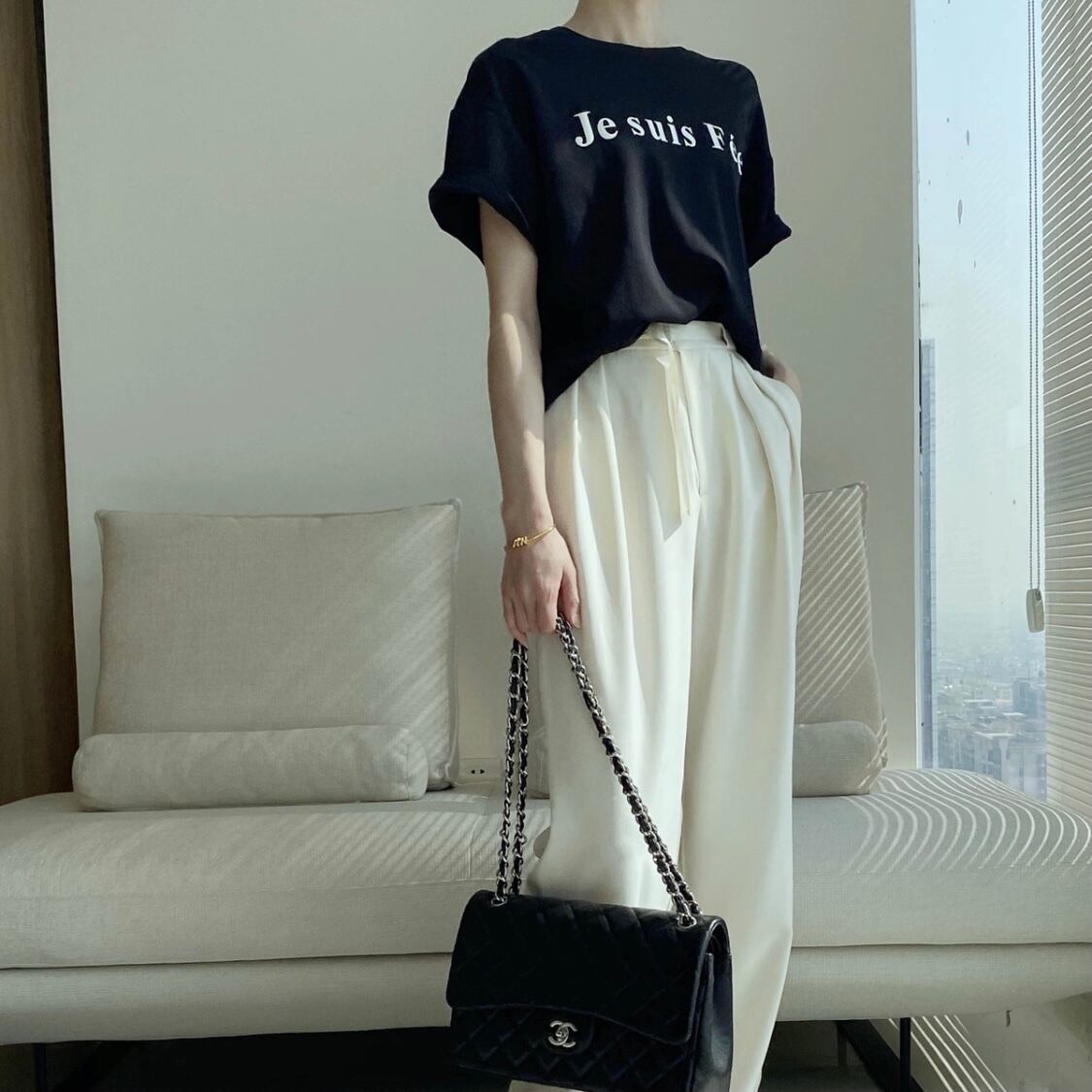 ロゴスウェットに引き続き、今シーズンもトレンドのロゴTシャツ。