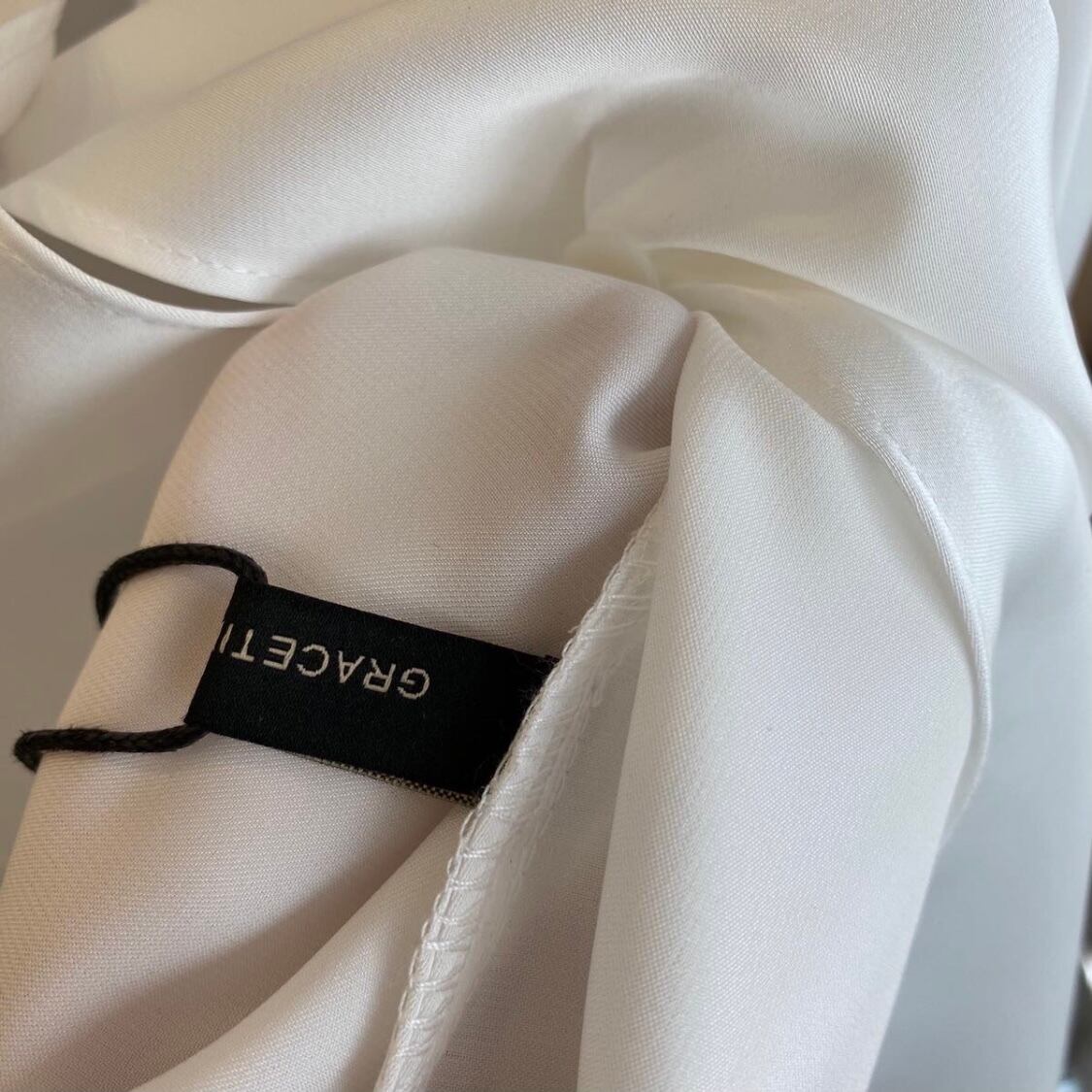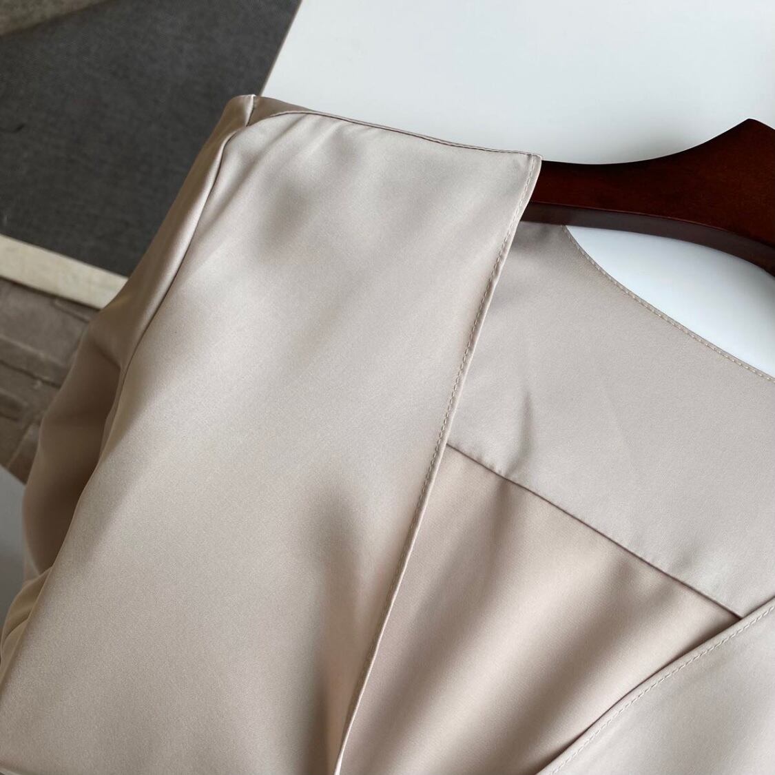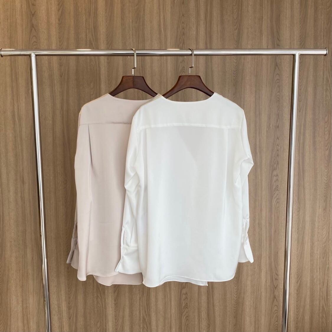 サテンの軽く優しい着心地と上品な光沢がきれいなトップス。