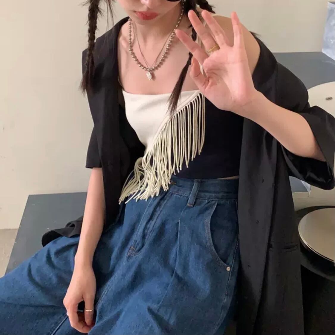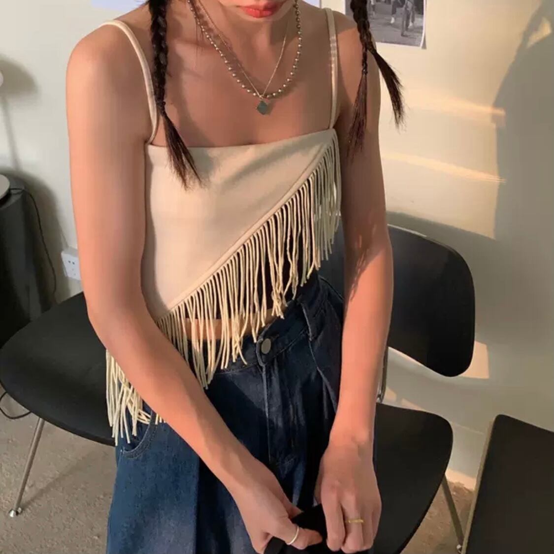 コーデのアクセントにぴったりなフリンジビスチェ。