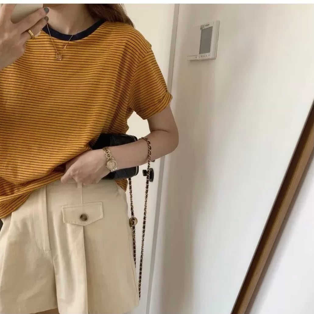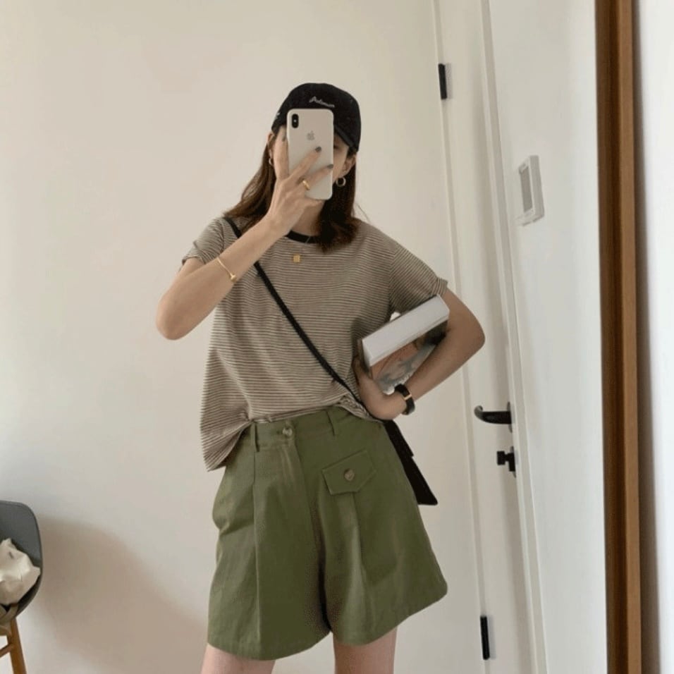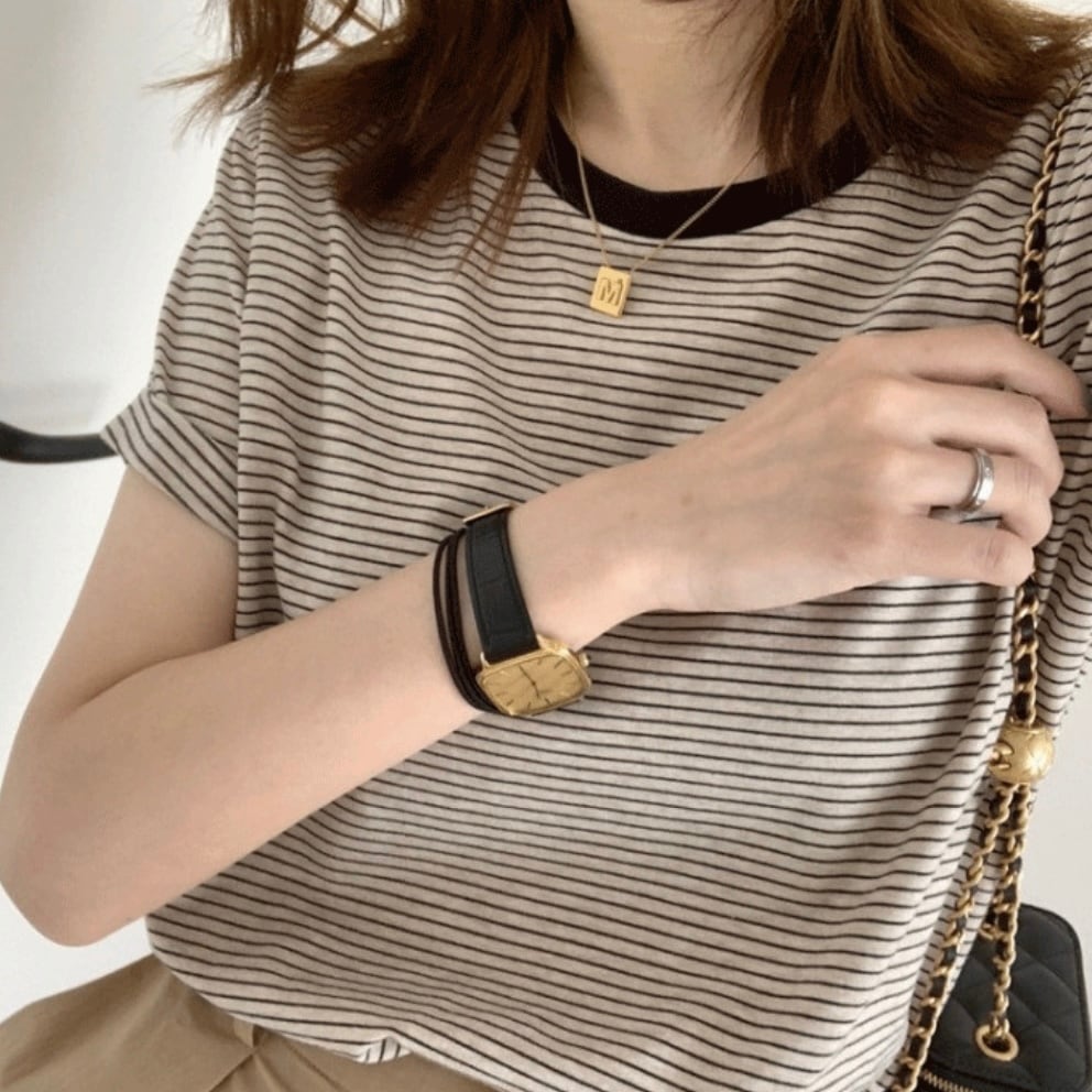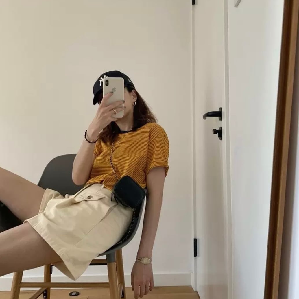 夏のエッセンシャルアイテムの1つであるボーダーTシャツはマストアイテム。