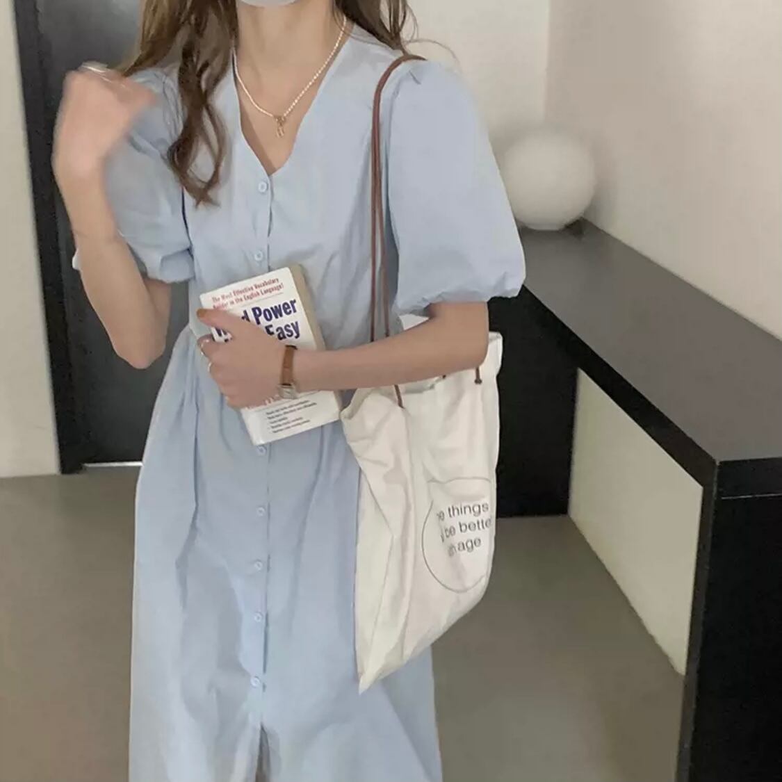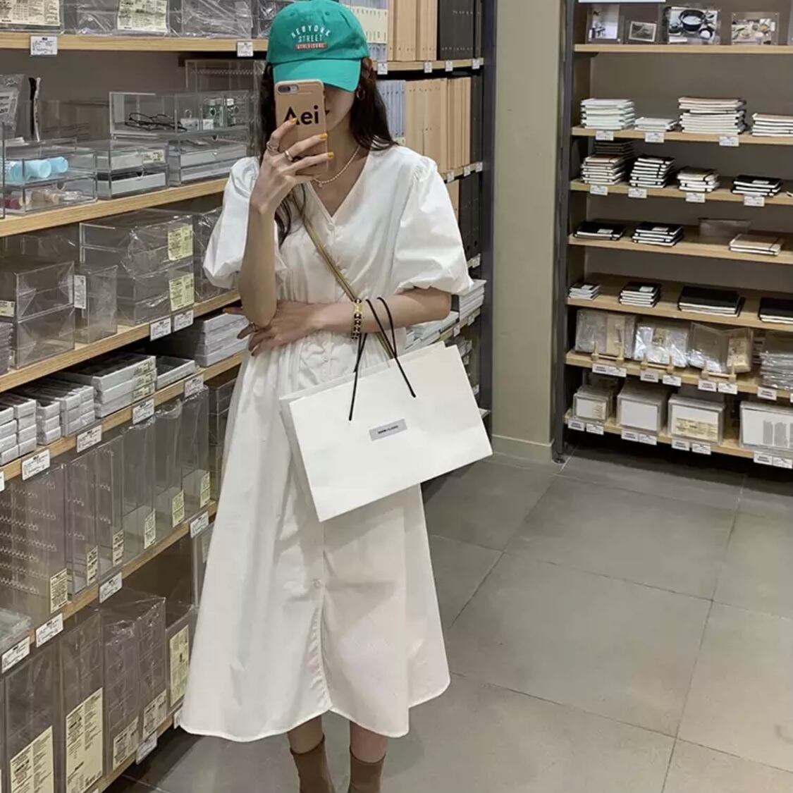パフスリーブやフレア切り替えに、旬な印象とモードな甘さが漂う1枚です。