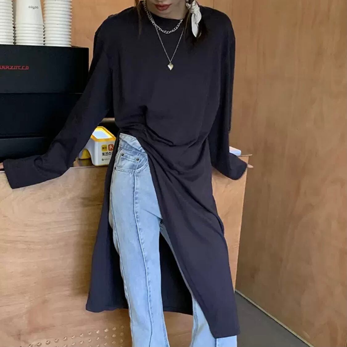 シンプルながら、スタイルアップの叶うロングTシャツ。