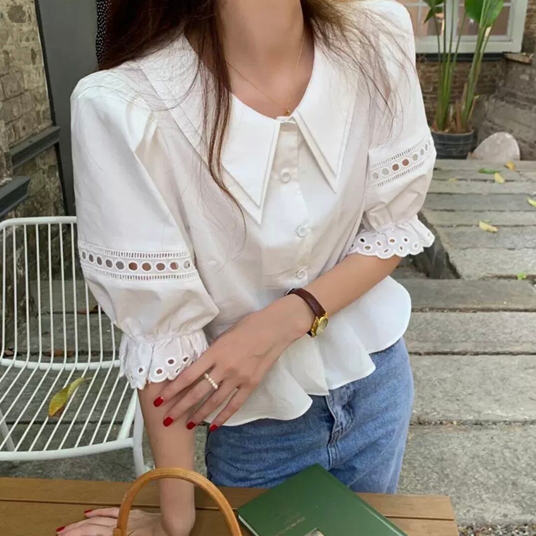 シルエットもデザインも、涼しげで可愛らしい印象を与えるペプラムブラウスです。