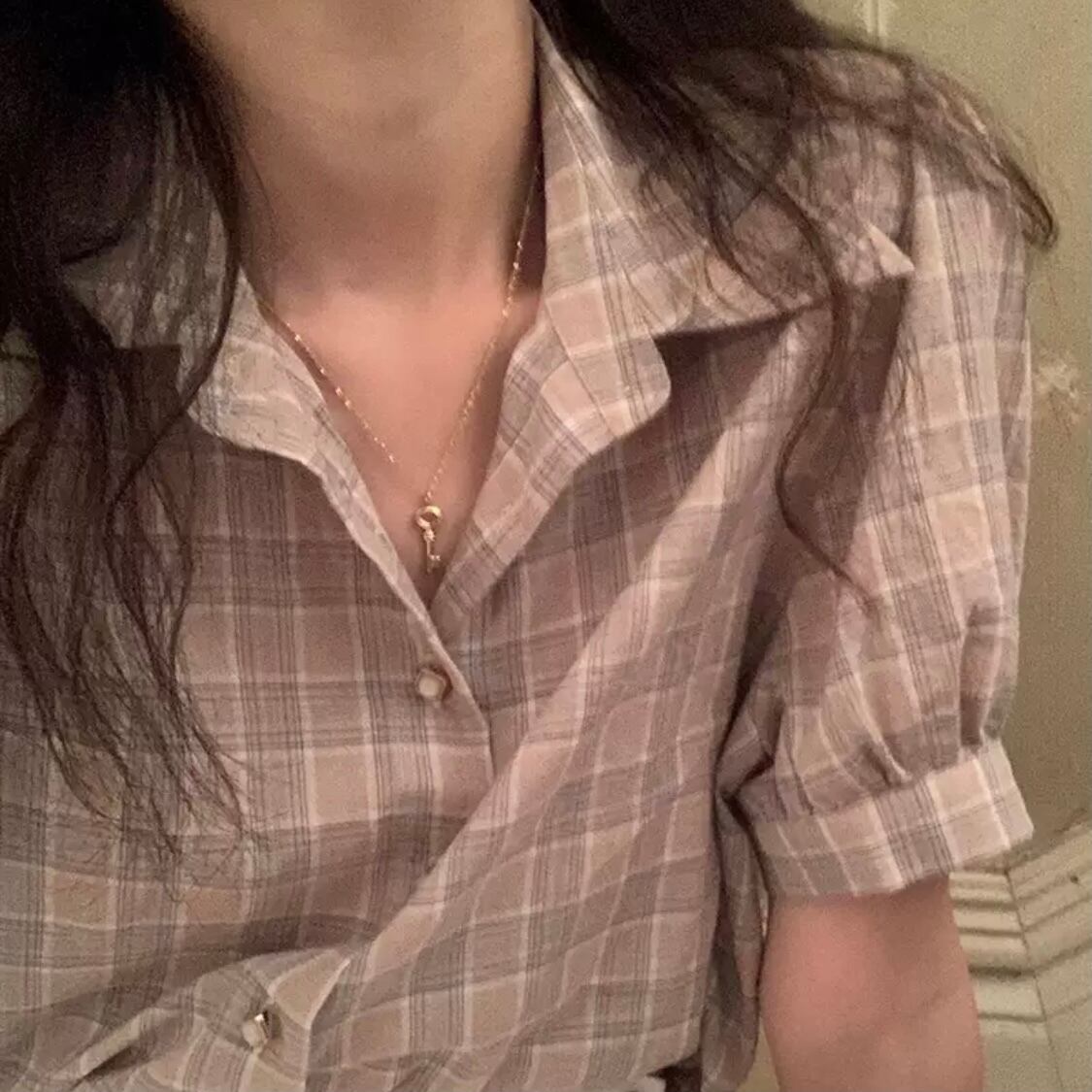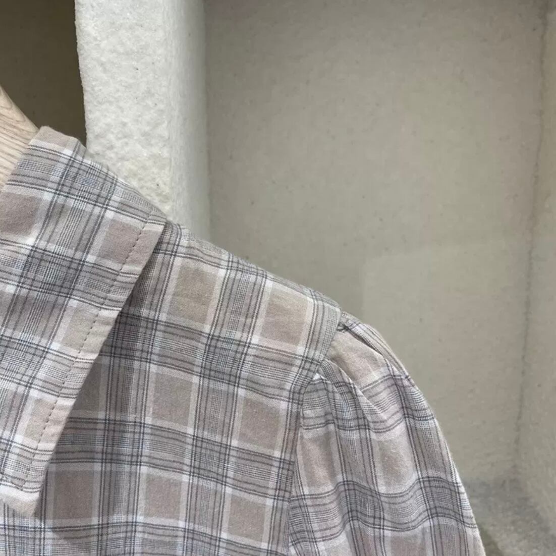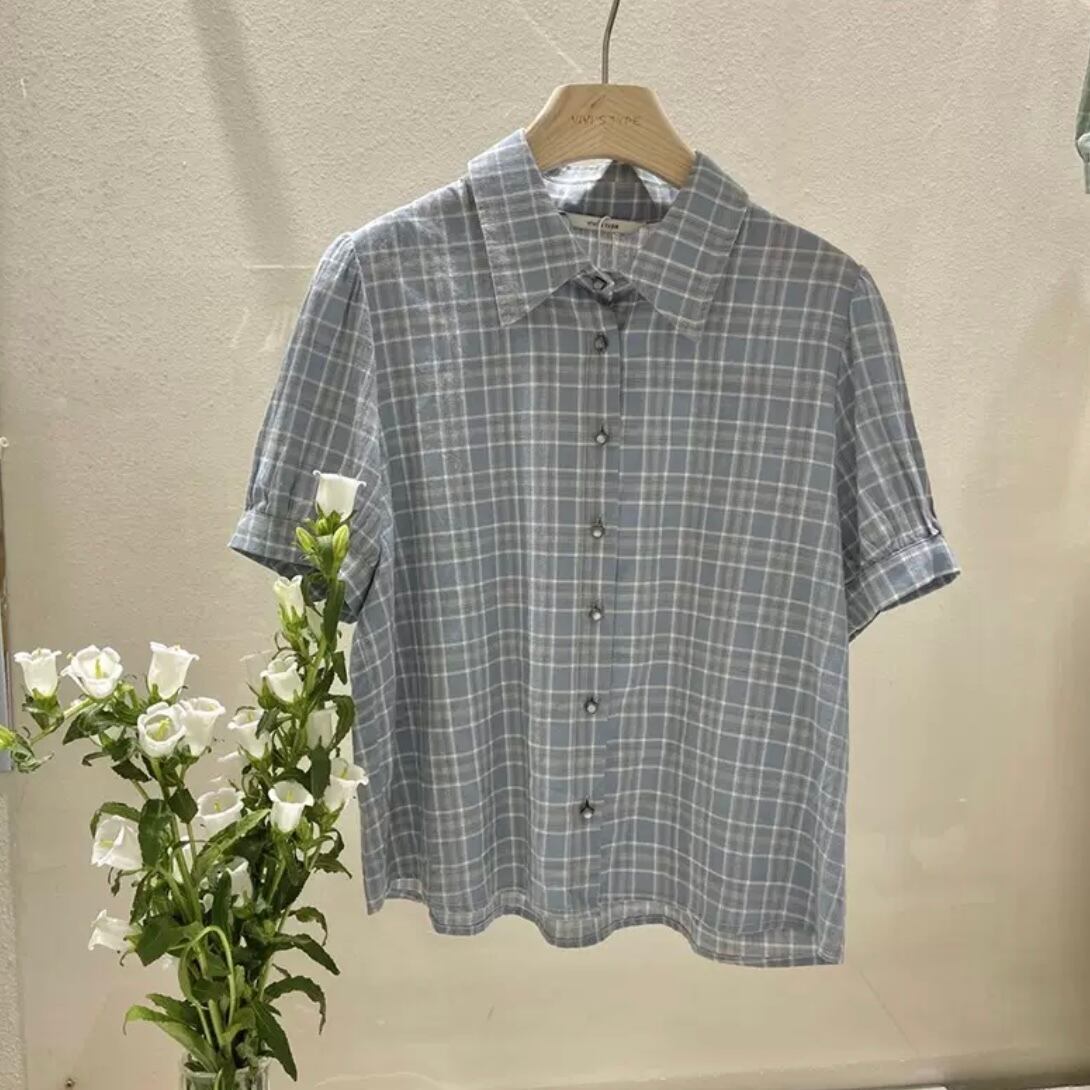 涼しげなカラーとチェック柄がこれからの春夏にぴったりなブラウスです。