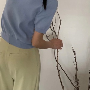 ピスタチオカラーが目を引くワイドパンツ。