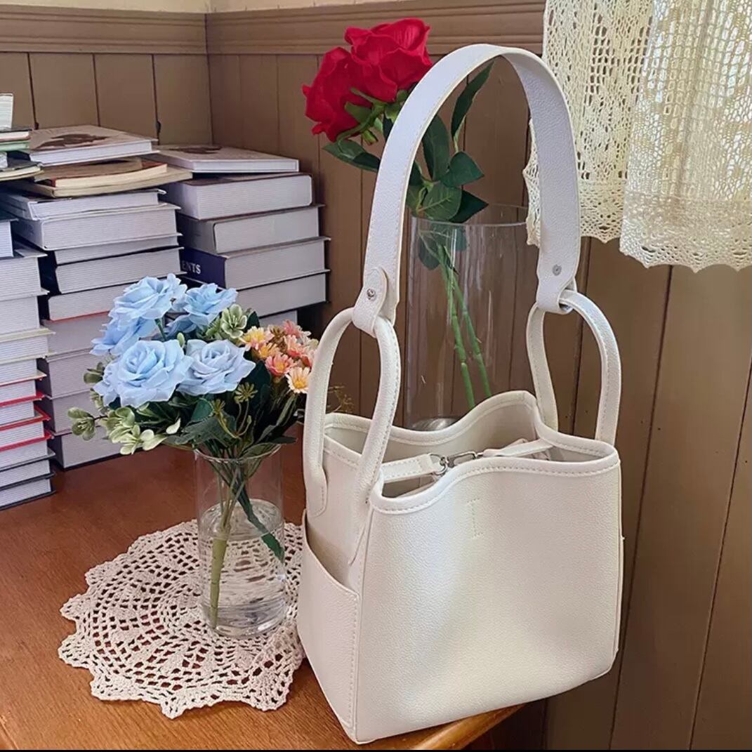お財布やポーチ、ペットボトルまでしっかり収納でき、サイドのポケットはスマートフォンなど小物を入れることができます