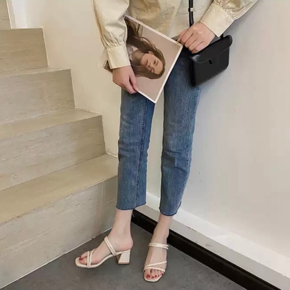 細めのストラップが女性らしさを引き立て、足元を美しく見せてくれます