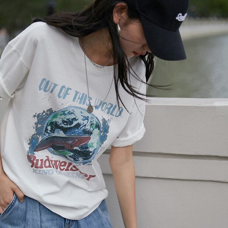 胸元のビッグプリンティングがヴィンテージ感漂い可愛いTシャツです。