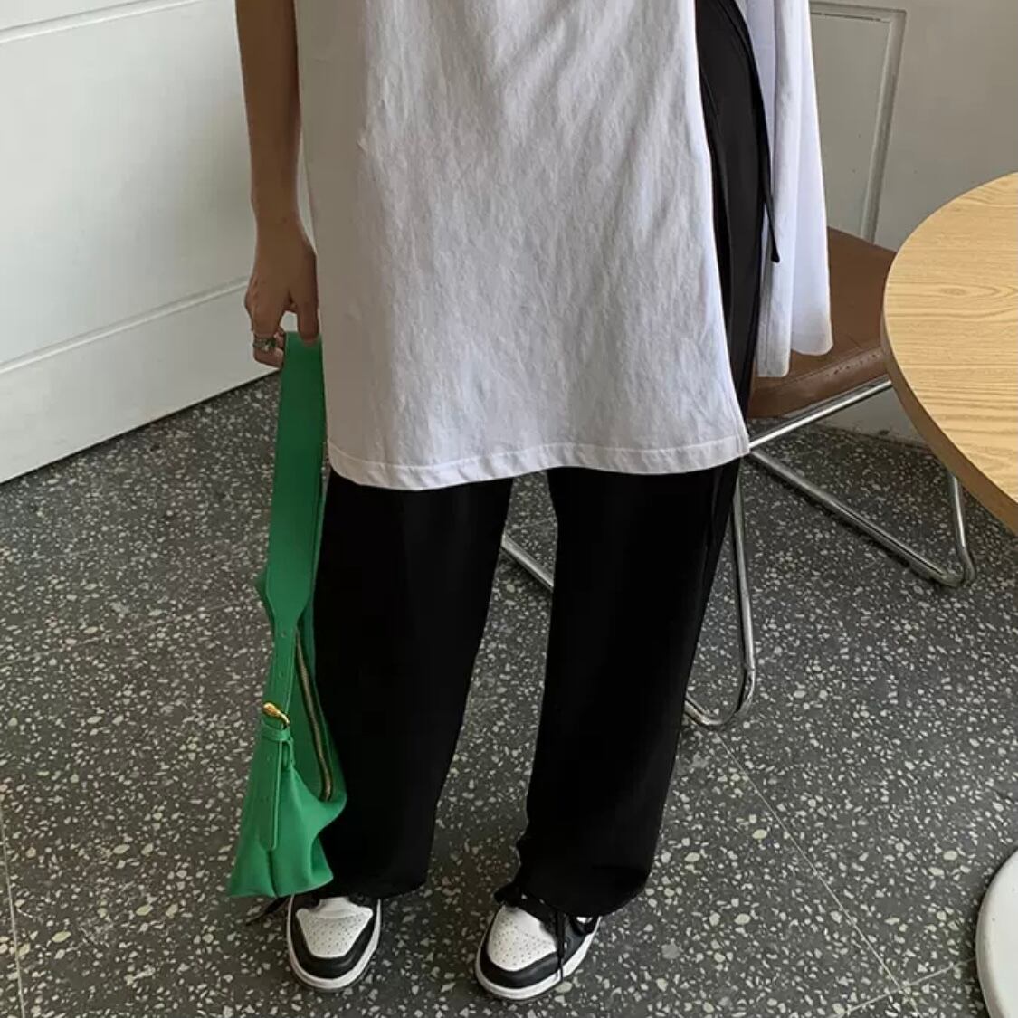 深く入ったスリットですっきり足長効果もあり、トレンドのニュアンス柄パンツやドロストパンツとの相性は抜群です◎
