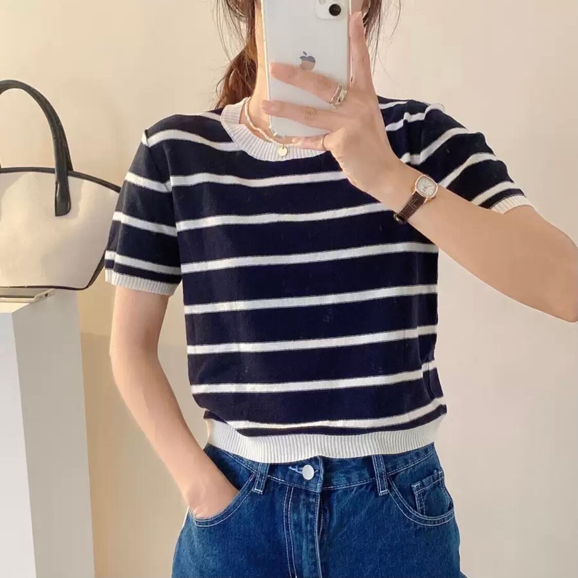 カーディガンやライトアウターなどのインナーとしても着用可能です。