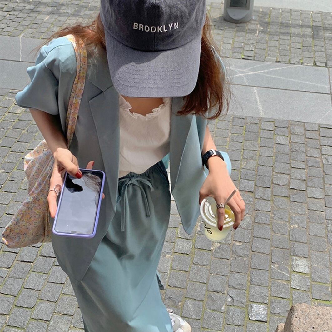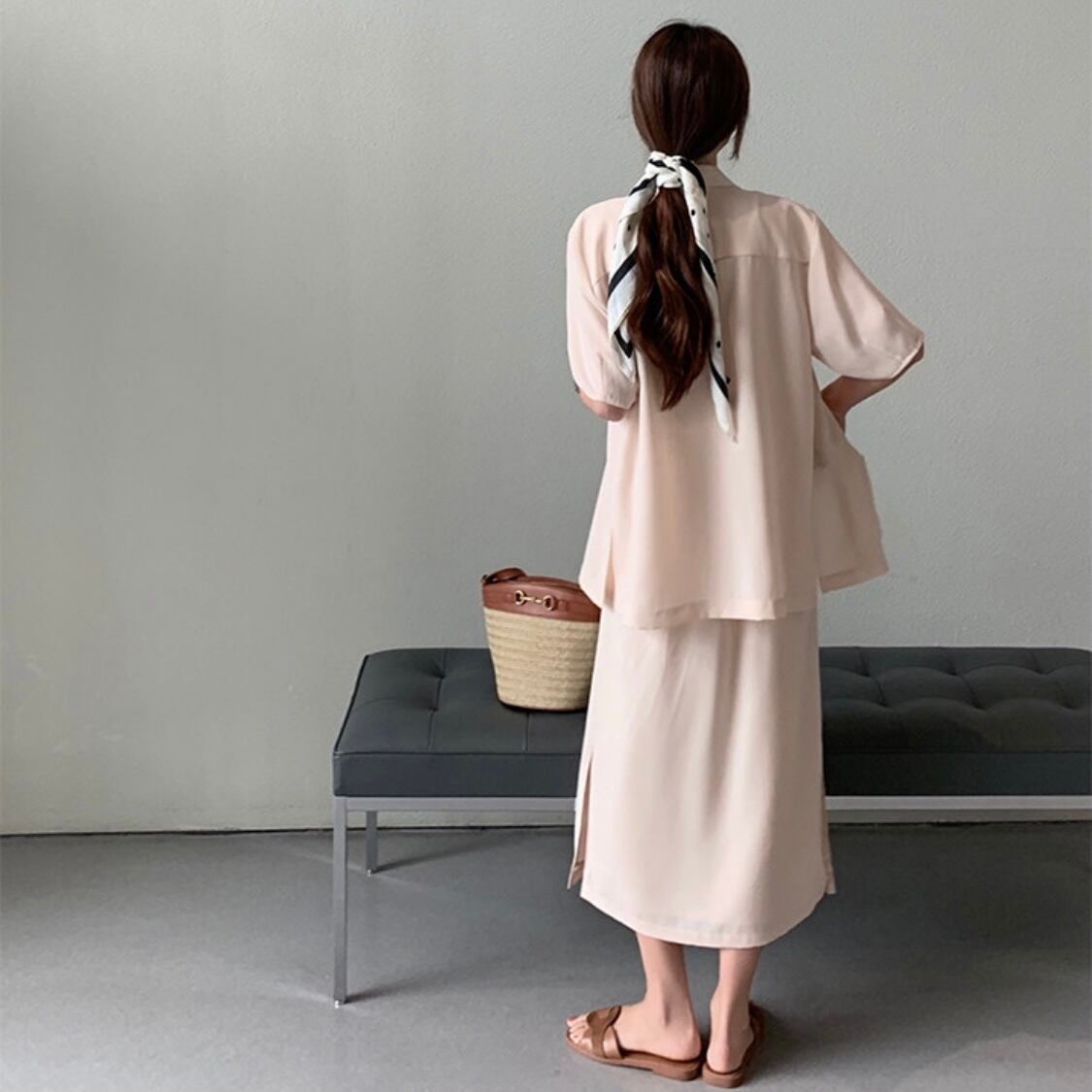 テロンとした着心地の良いジャケットとスカートセットアップです