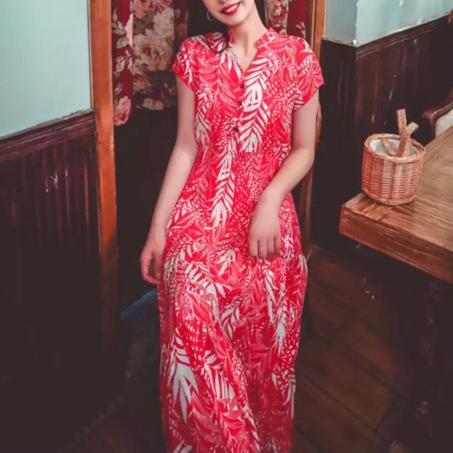 パッと目を引くカラーと、夏っぽいボタニカル柄が気分を一気に明るくしてくれるワンピース。