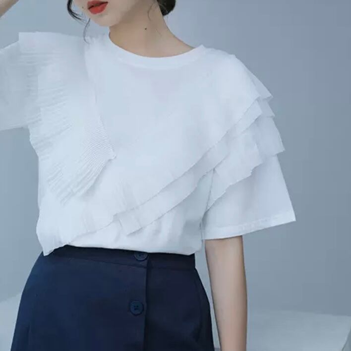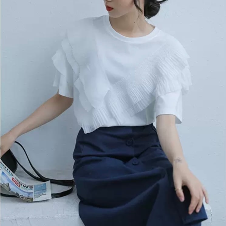 フリルが主役であとはシンプルなデザインなので大人の女性や、カジュアル派も取り入れやすいアイテムです。