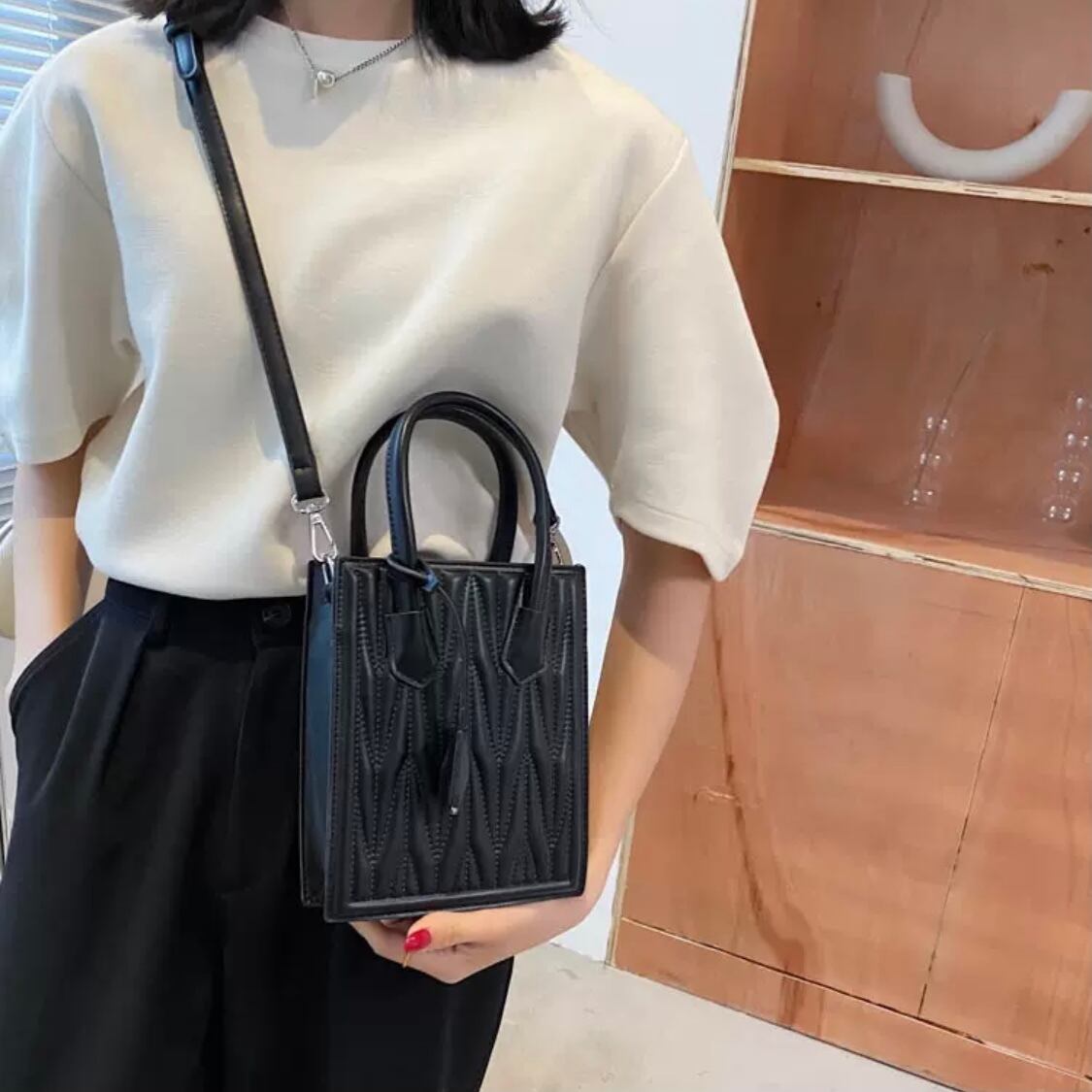 ちょっとしたお出かけにもきちんと感が出る、きれいめスクエアバック。