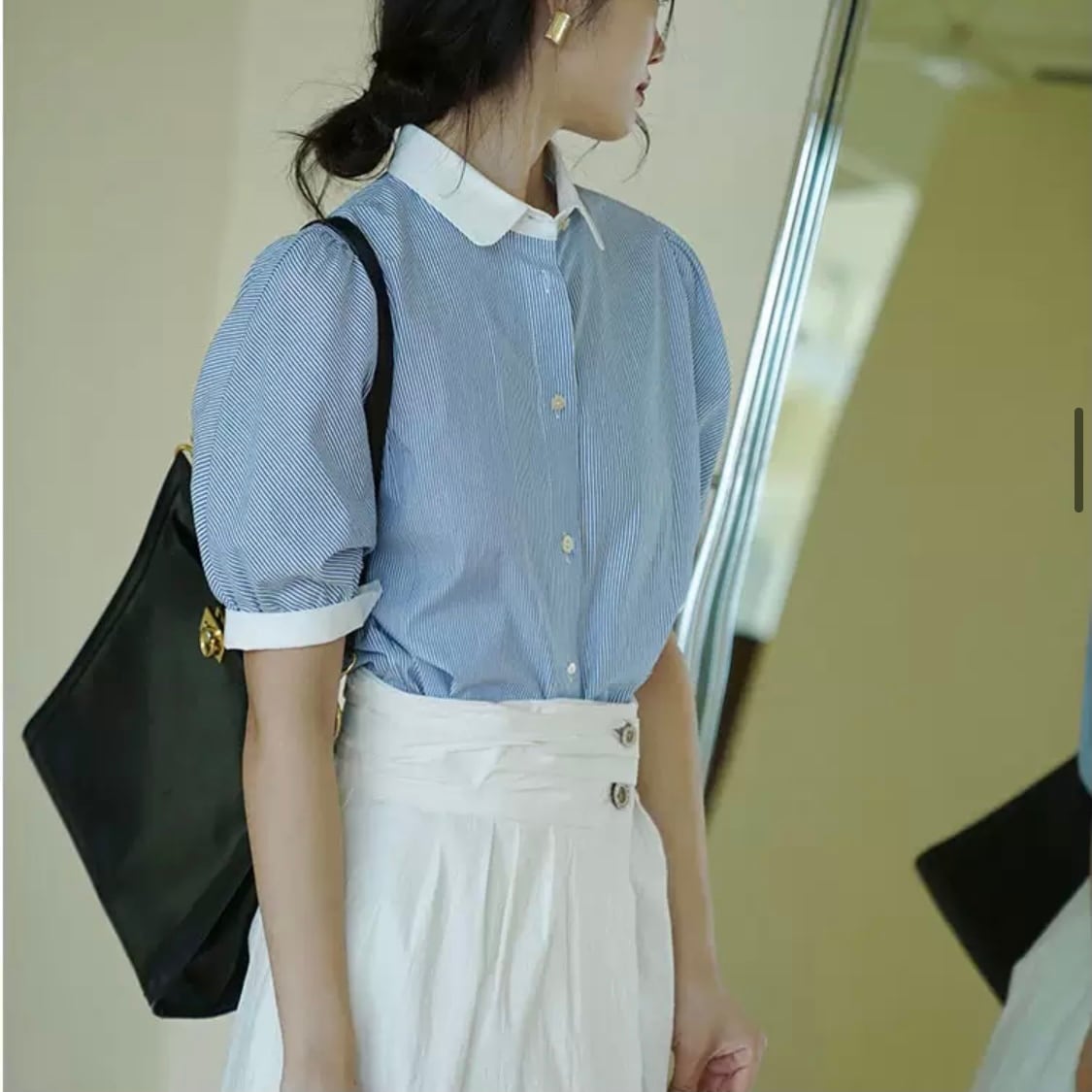 シンプルなデザインながらにボリューム感のある袖がおしゃれで目を引くデザインです。
