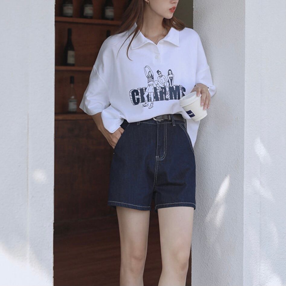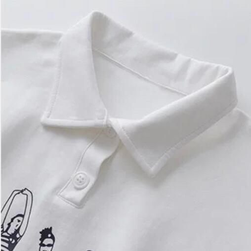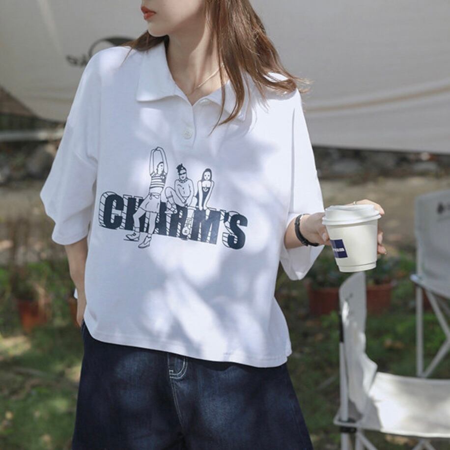 ロゴ入りの身幅や袖丈がルーズめなポロシャツ。