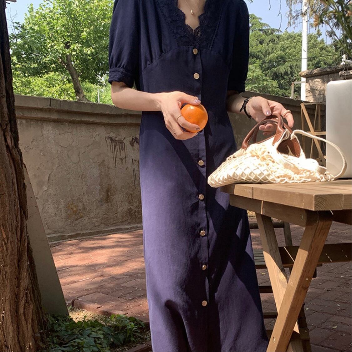 細部のディティールは甘めに、全体的にはすっきりとしたデザインで、甘めカジュアルコーデにピッタリです。