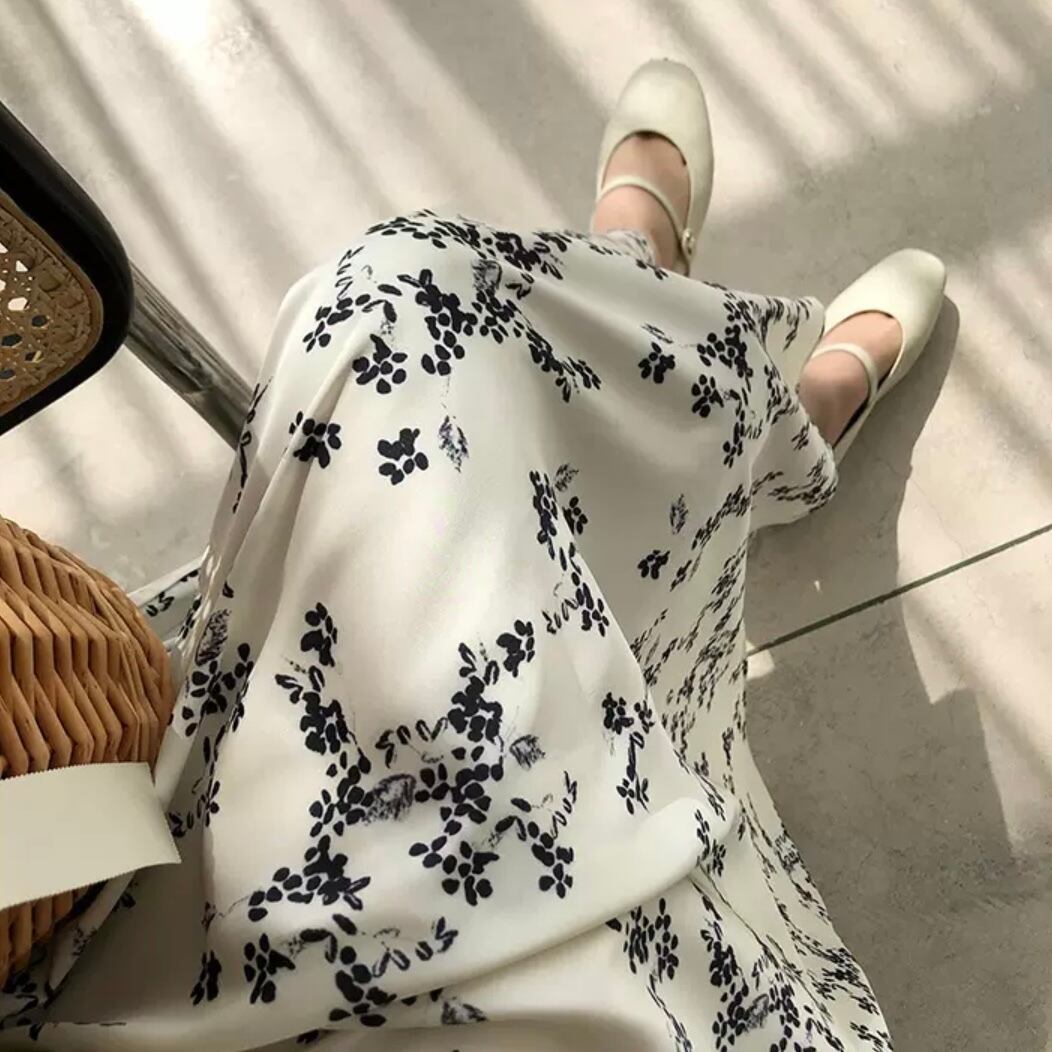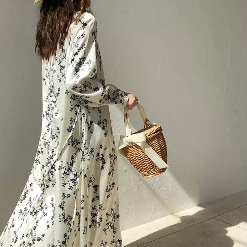 控えめにあしらった小花柄や生地の持つ、つやっとした風合いが、大人の可愛げとこなれ感をバランスよく演出します。