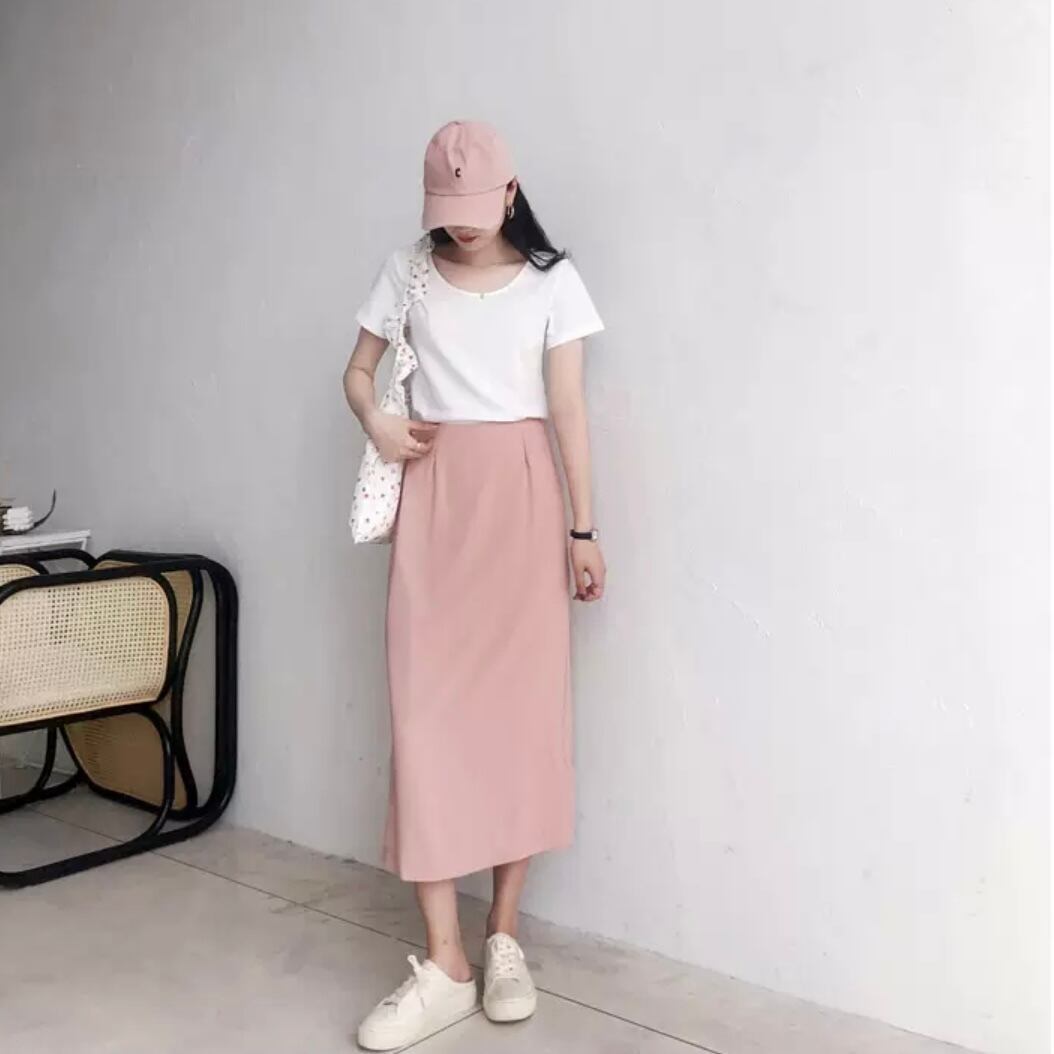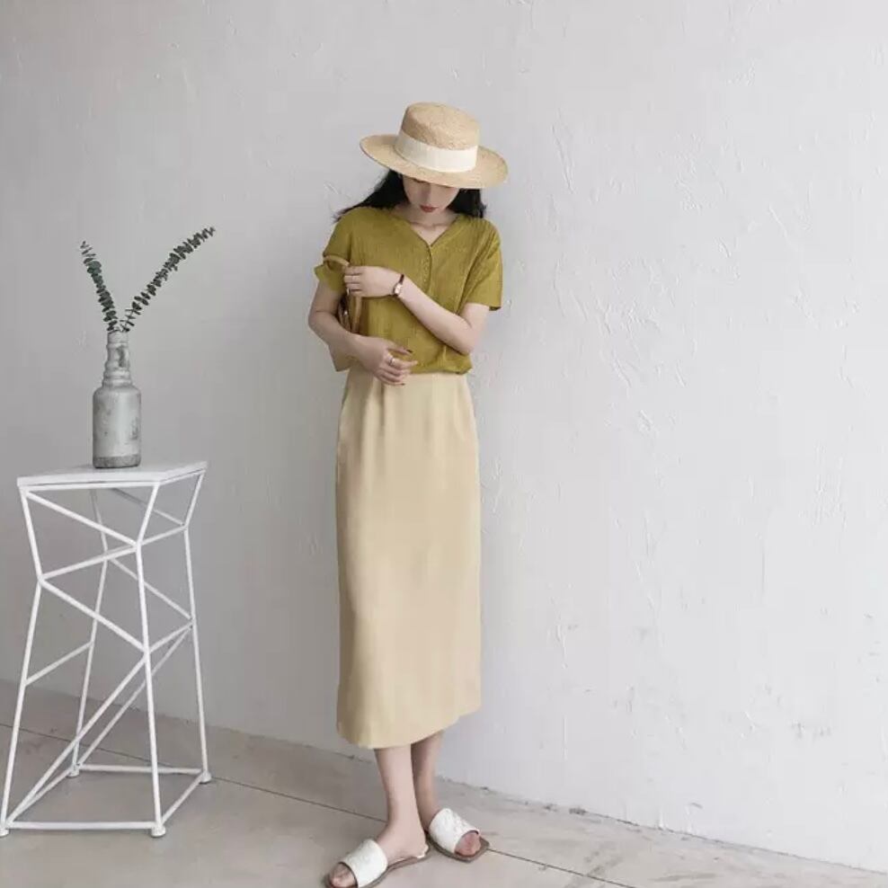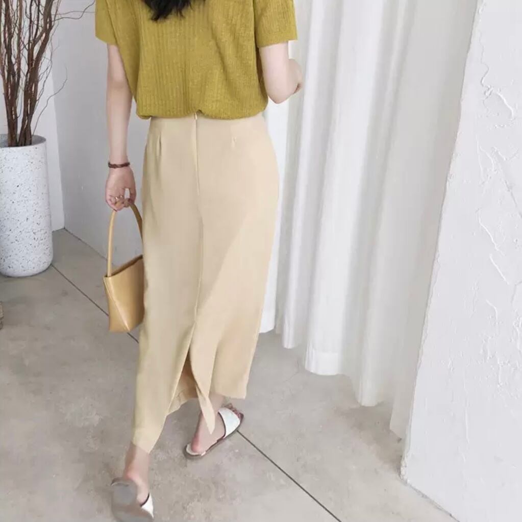 女性らしいストレートシルエットに、バックのスリットがすっきりとしたスタイリングに見せてくれます。