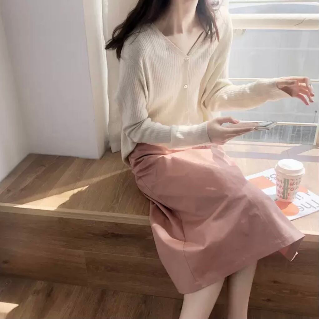綿素材で、リラックス感のあるはき心地の良いアイテム。後ろにはスリットもはいっているので、足さばきも◎