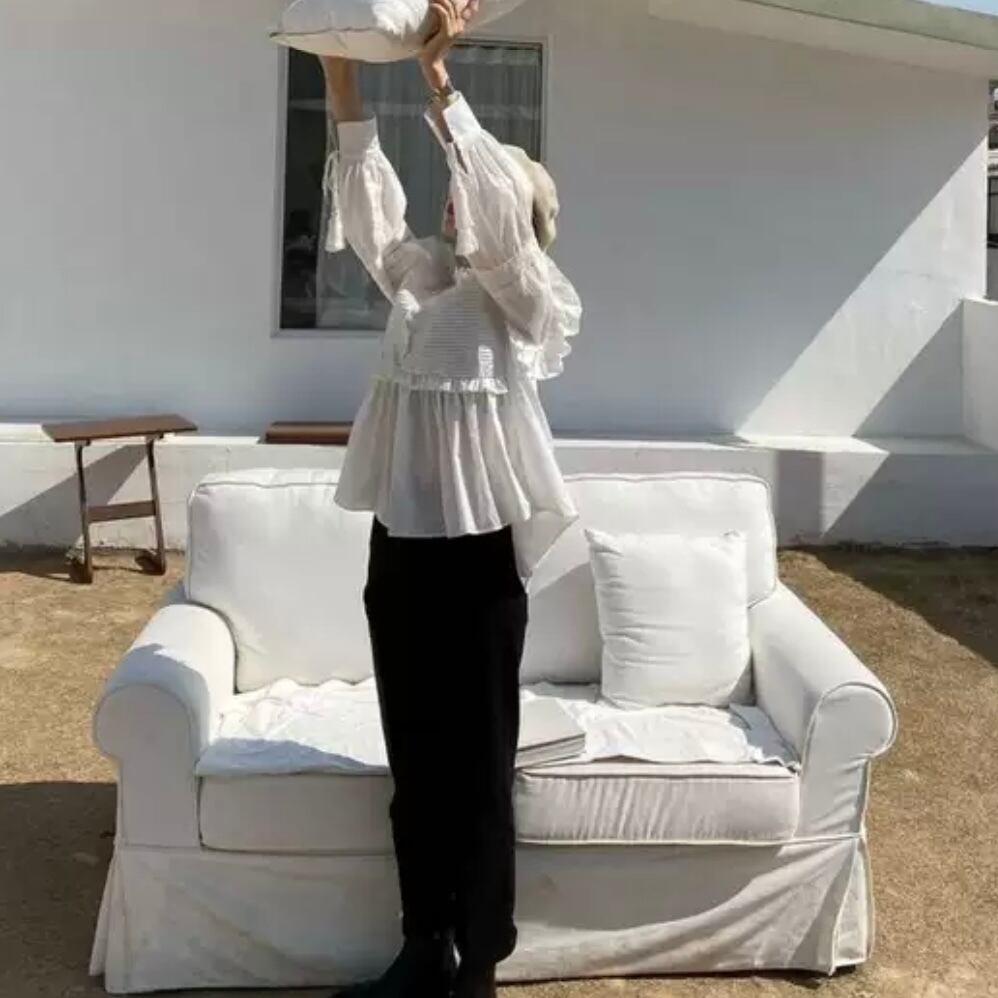 シンプルなボトムに合わせるだけで大人フェミニンスタイルに。