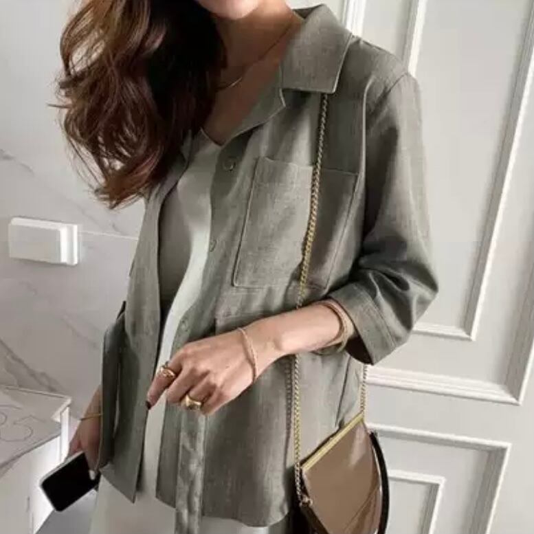 ボタンを開けて羽織りとしても使えます。インナーには、抜け感が出るレースキャミやタートルネックを合わせるのがおすすめ。