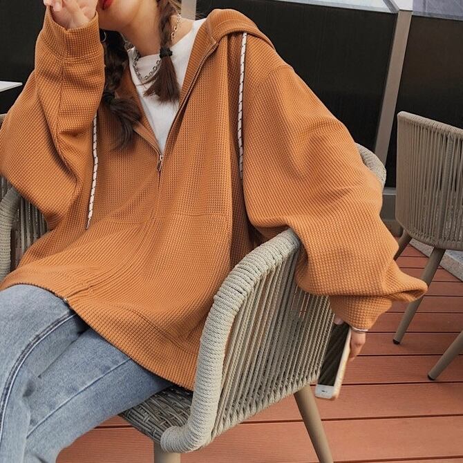 今年らしいビッグシルエットのインナーの上からでも楽に羽織れる一枚です。