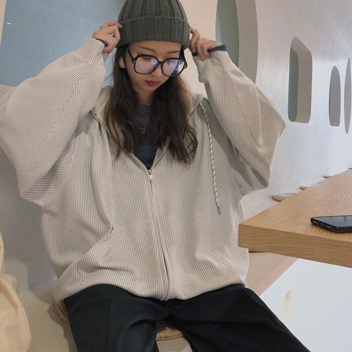 細かいワッフル編みでさりげない表面感がポイント。