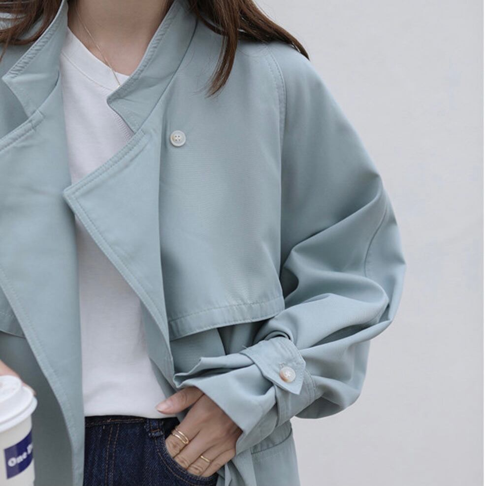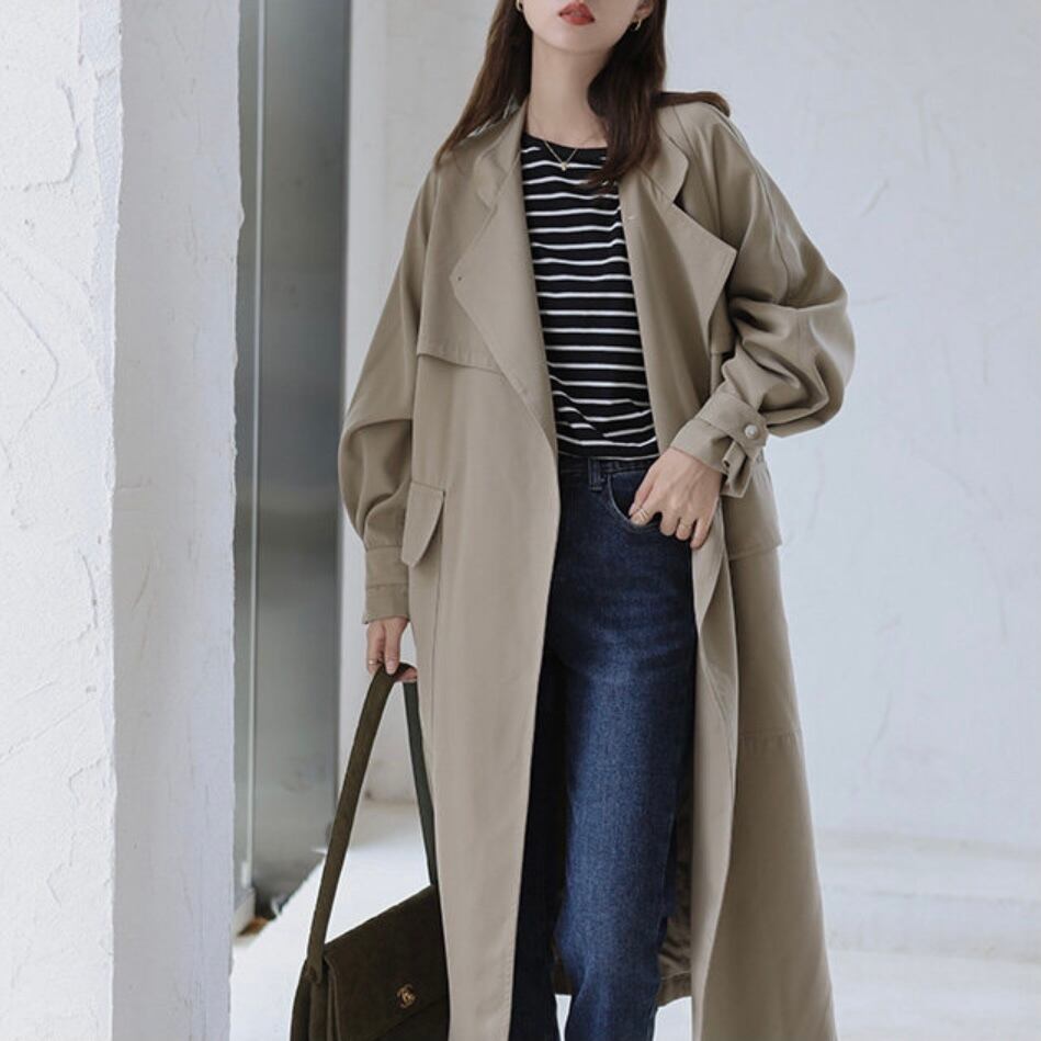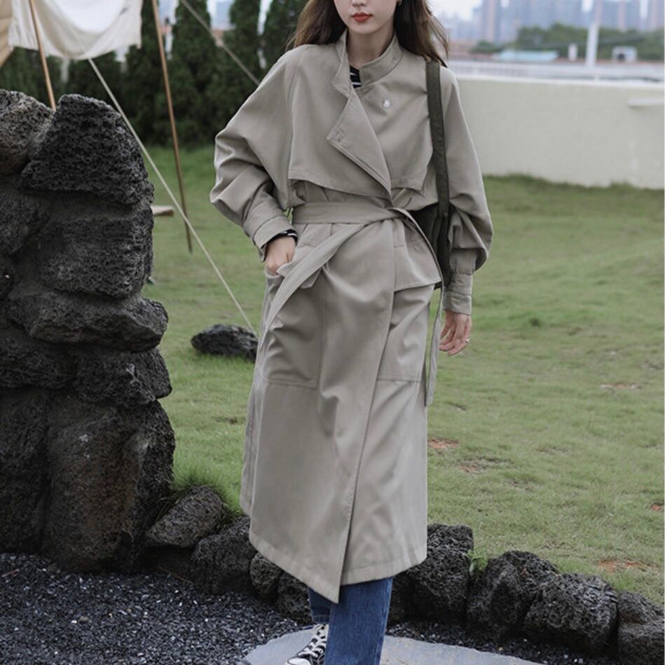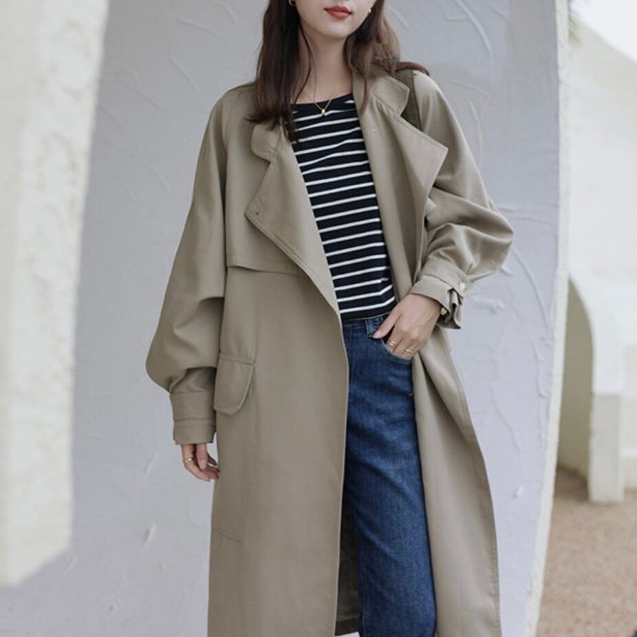 襟を立てればウインドブレーカーのように、折ればトレンチのようにも着ていただける万能コート。ドレープの効いた長い丈と軽い着心地で寒くなり始めの強い味方となります。