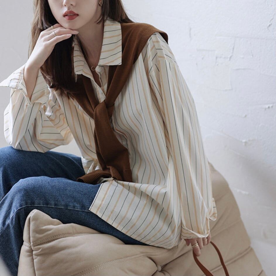 オールシーズンコーデのアクセントとして使えるフェイクカーデガン。寒さ対策にもぴったりです。