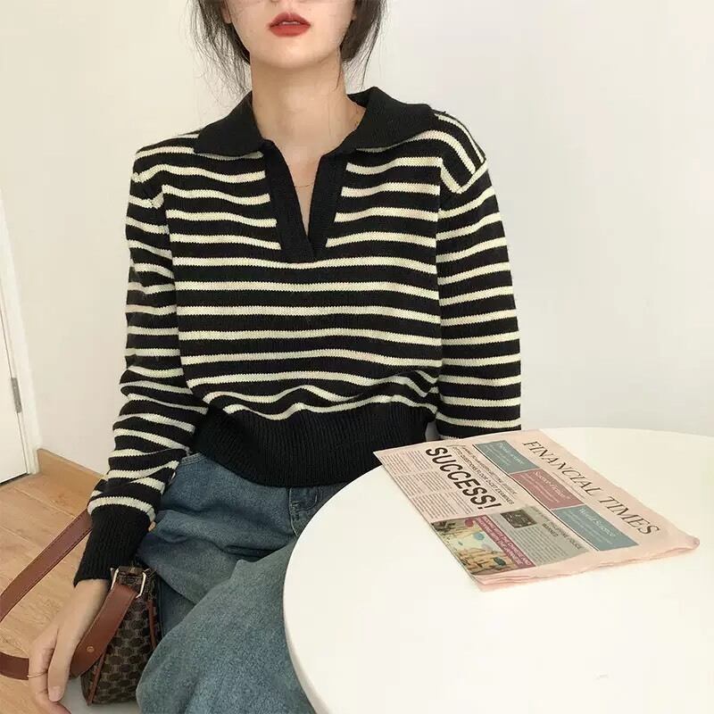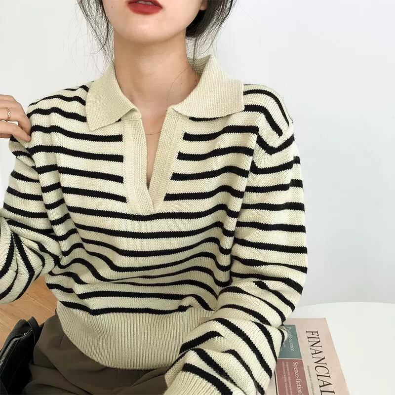 今季1点持っておきたい洒落見えな、襟付きボーダーニット。