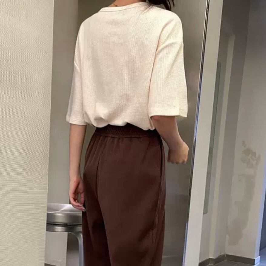 ビッグサイズのトレンドグリーンロゴをプリントしたカジュアルライクなデザインが目を引くオーバーサイズのTシャツ。白よりも秋めくオフホワイトのレトロライクなディテールにも注目。今年らしい長めの着丈なので、ウエストインはもちろん、ボトムから出したスタイリングも難なくこなしてくれるオススメの1着です♪