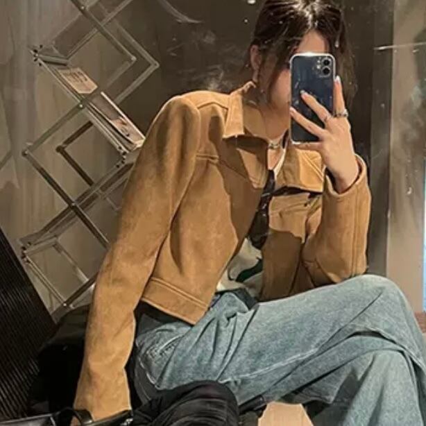 すっきりとしたウエスト丈のジャケットは、ミドル丈からロングアイテムまで様々なスタイリングと相性バッチリ。