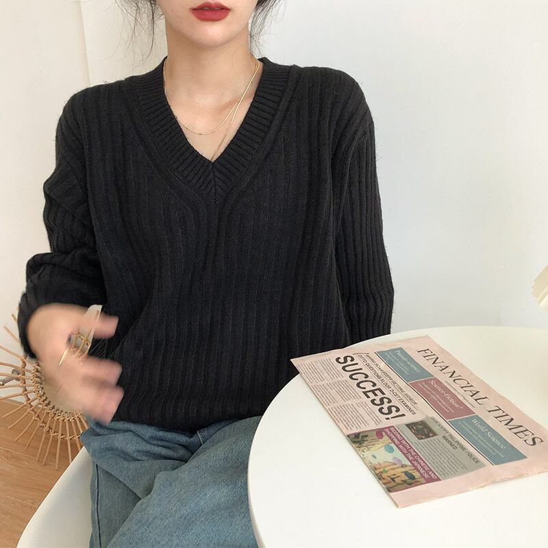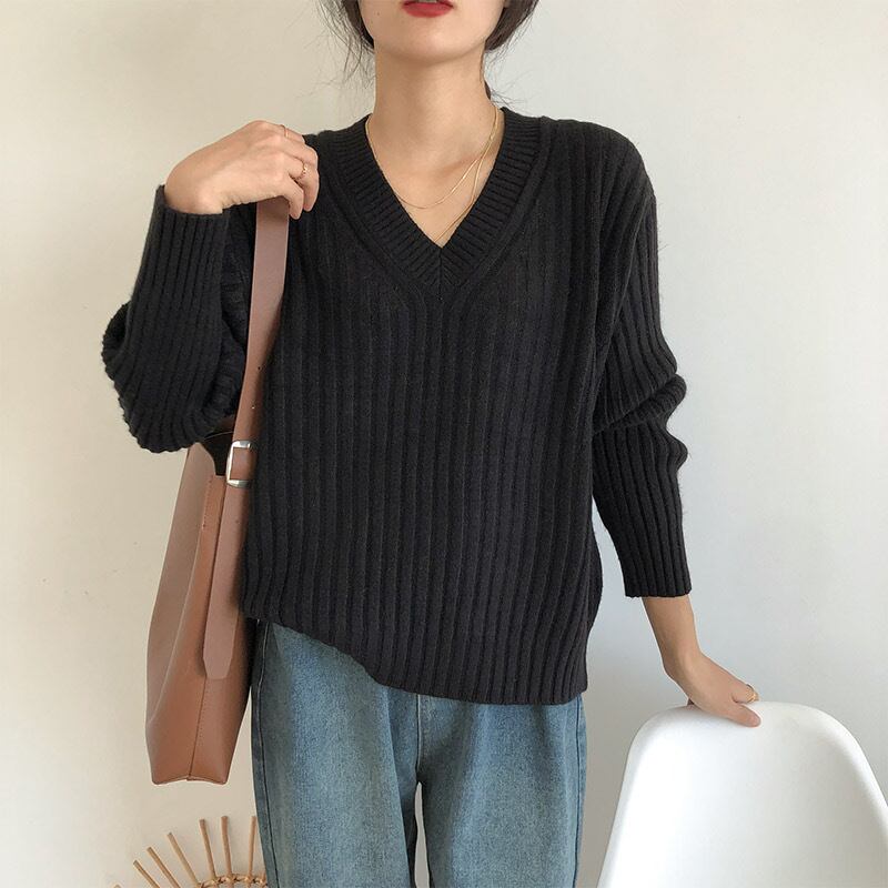 ゆったりとした身幅と余裕のあるVネックデザイン、縦ラインを強調し、ゆったりしたサイズ感でもすっきりとした印象です。