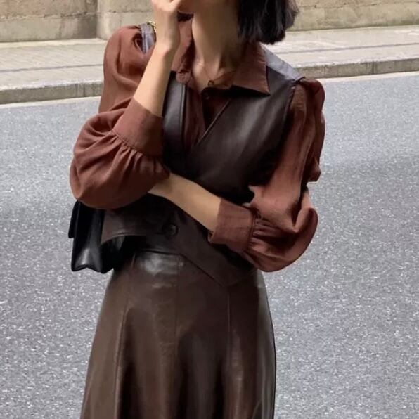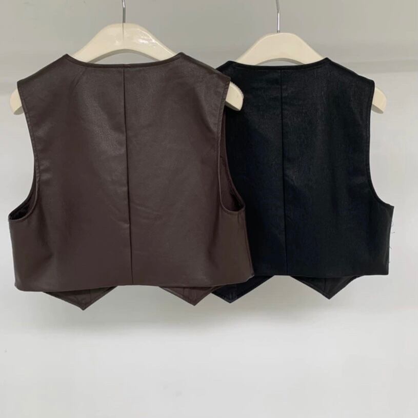 注目度の高いエコレザー素材を使用したインパクトのあるベスト。