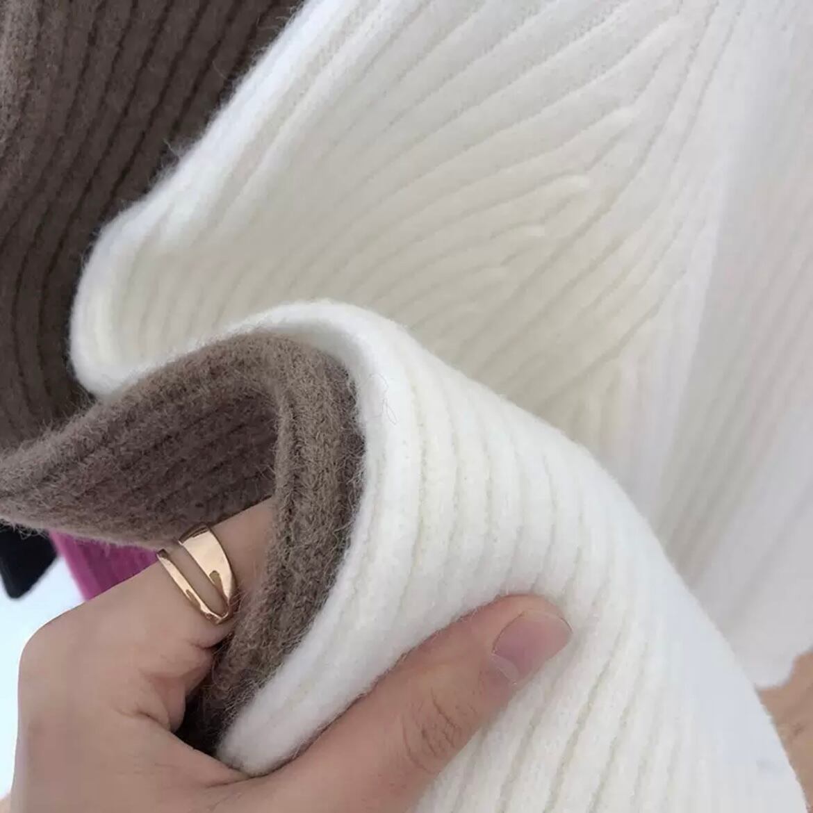 知的な印象を与えるタートルネックで、防寒性にも優れています。